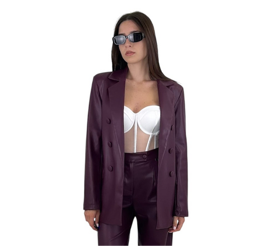 Blazer in ecopelle modello monopetto con un solo bottone rivestito tono su tono collo a...