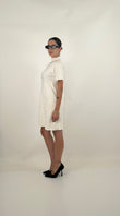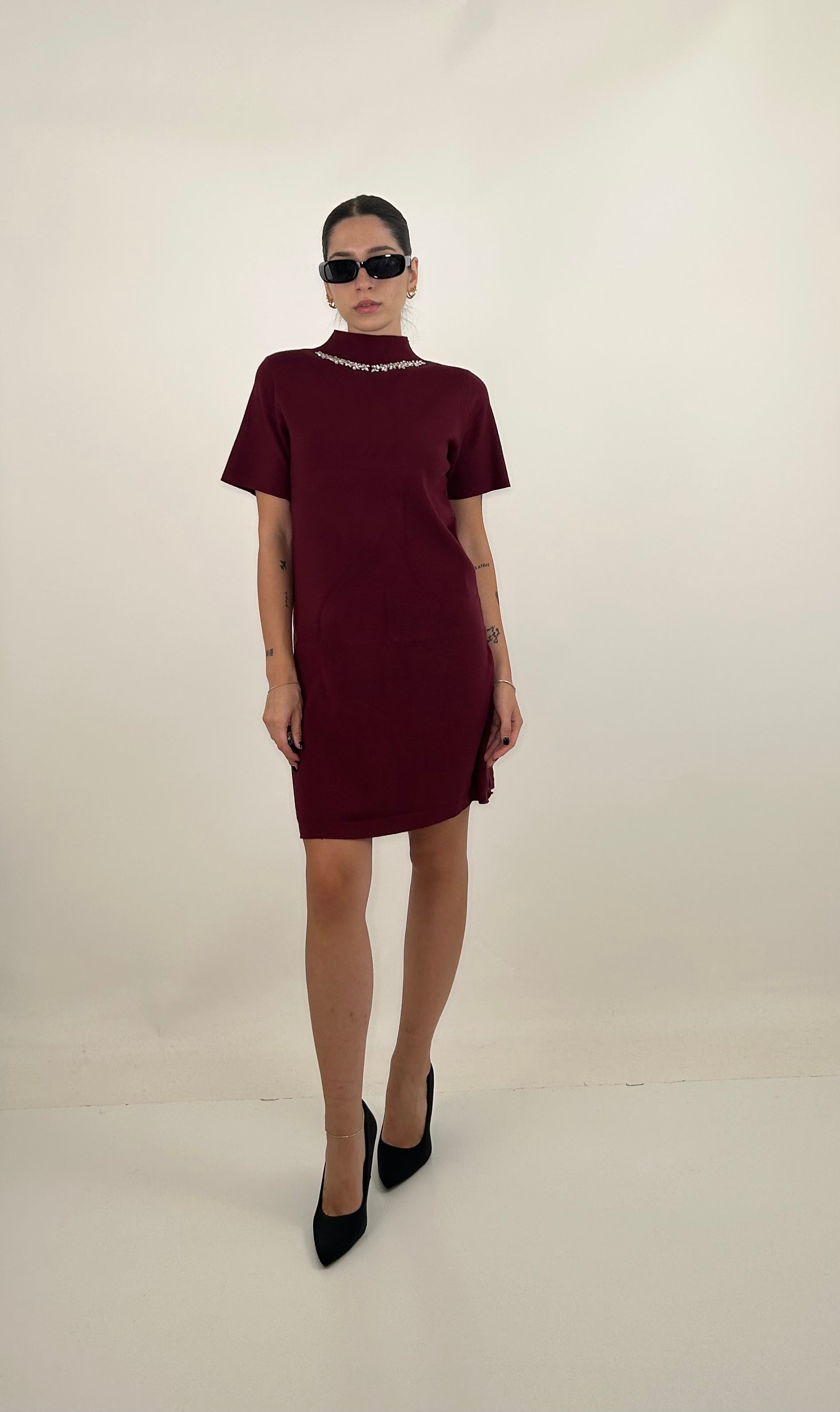 presenta maniche corte e scollo rotondo impreziosito da un dettaglio gioiello