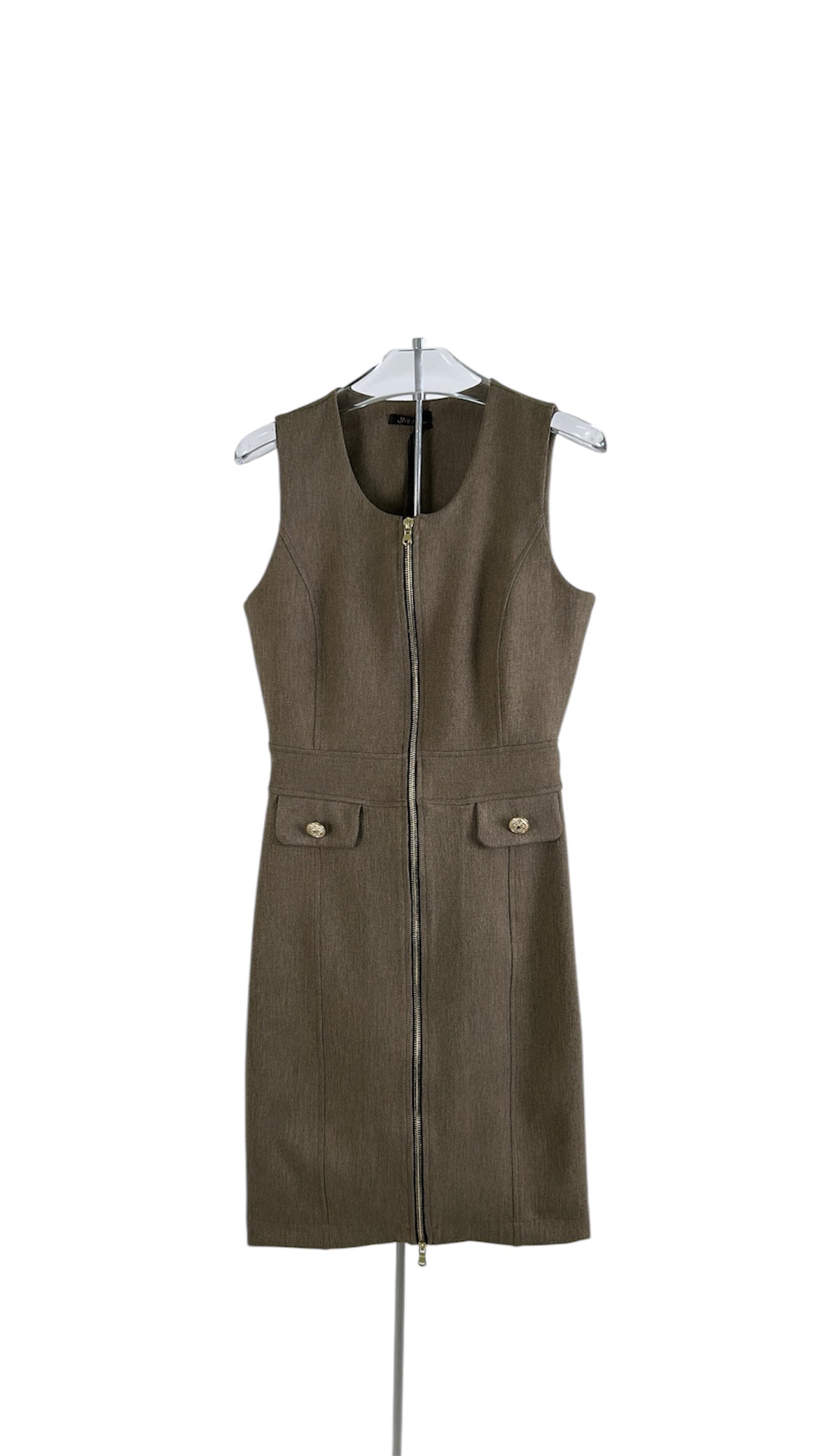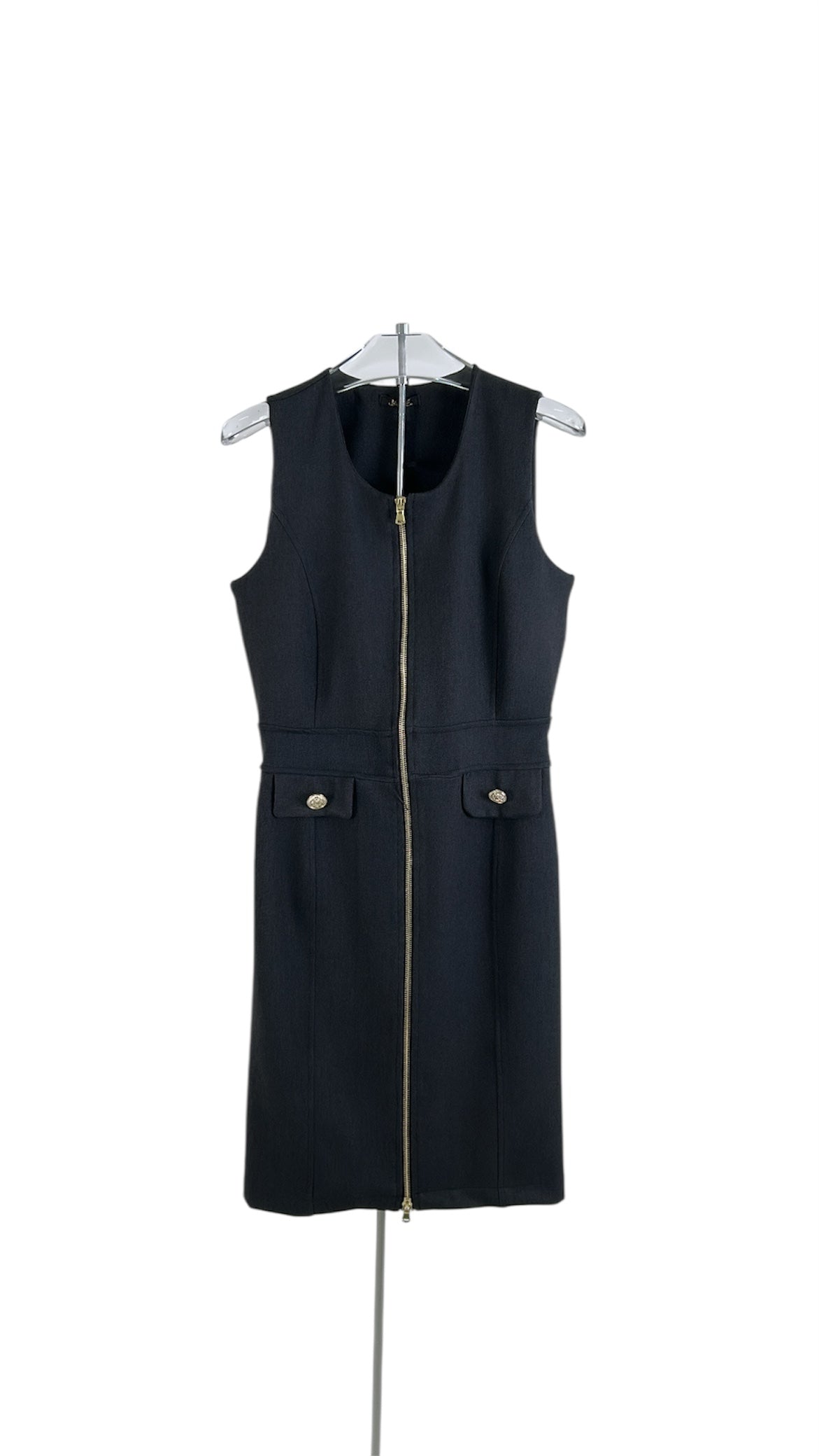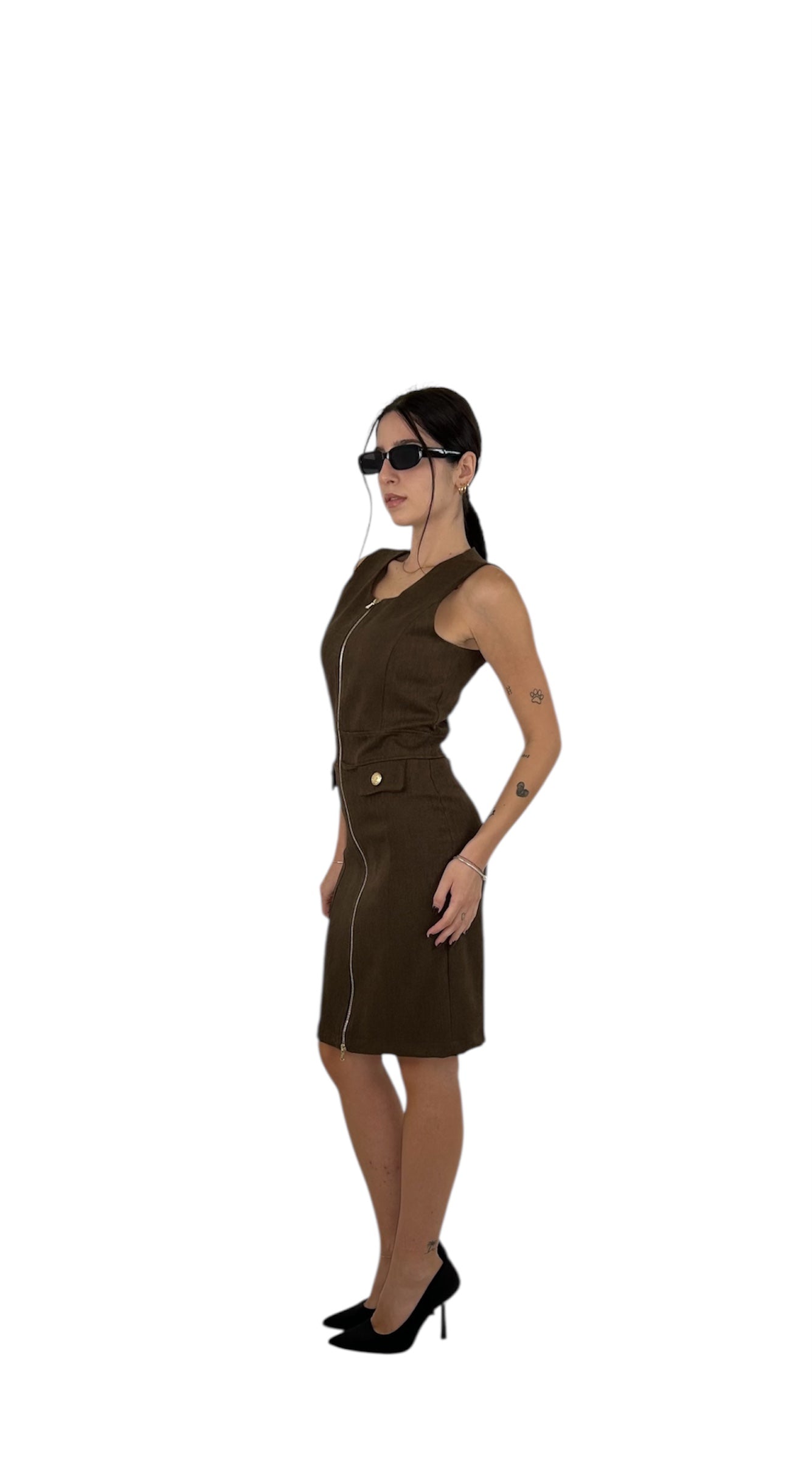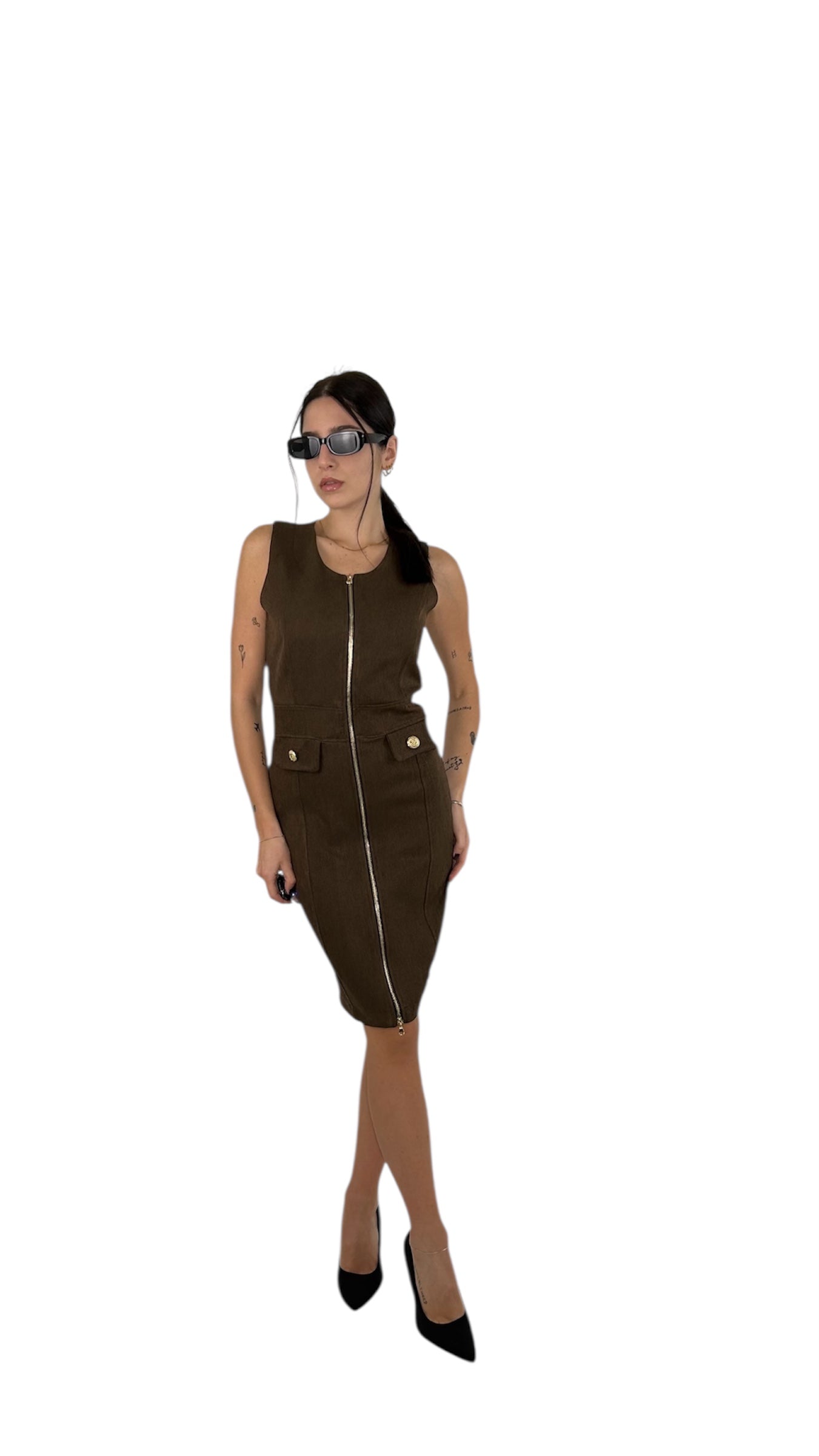 chiusura frontale con una zip Metallica che corre verticalmente dal collo fino all’orlo