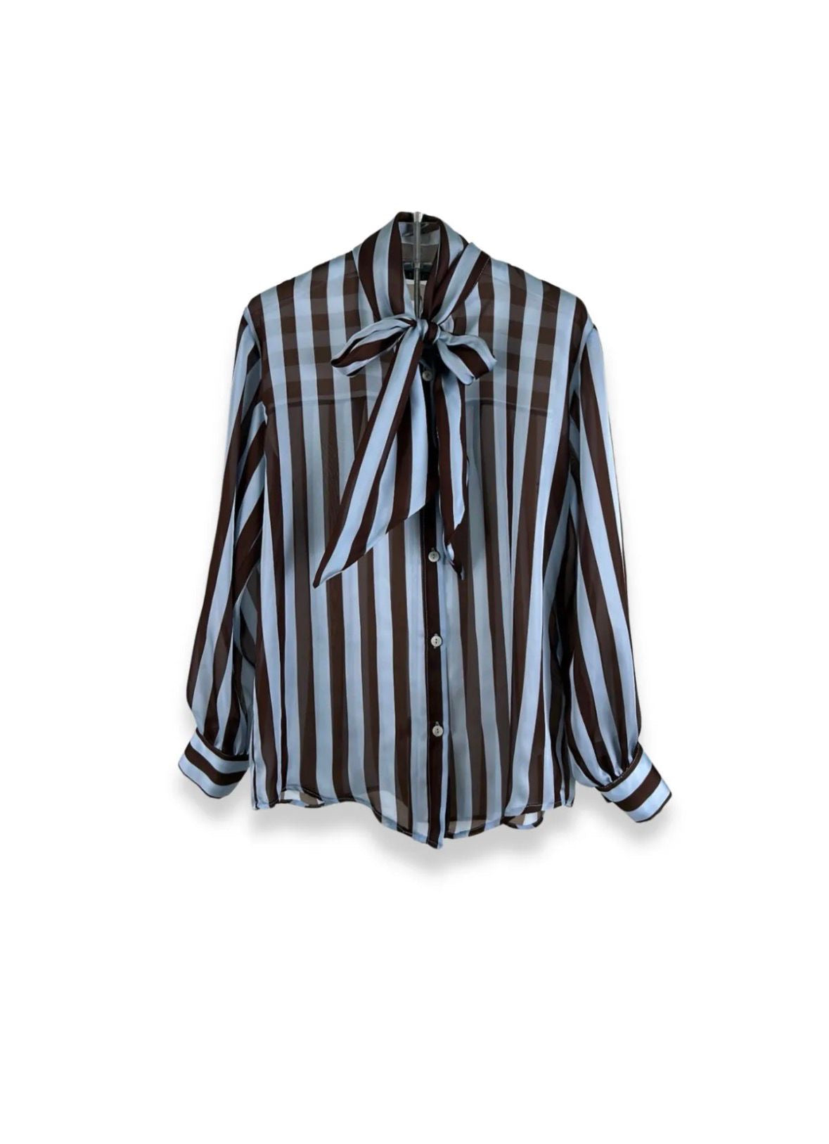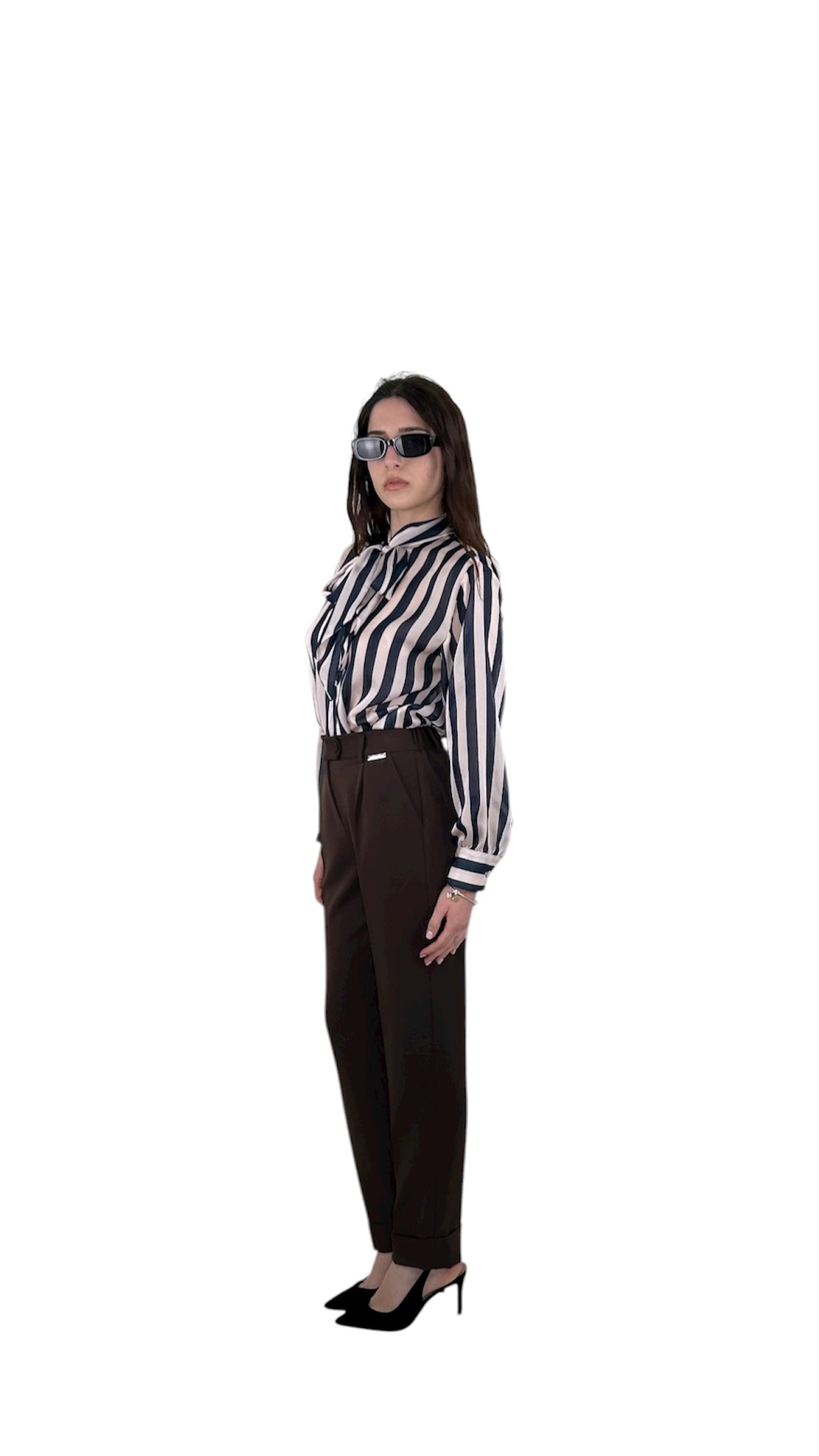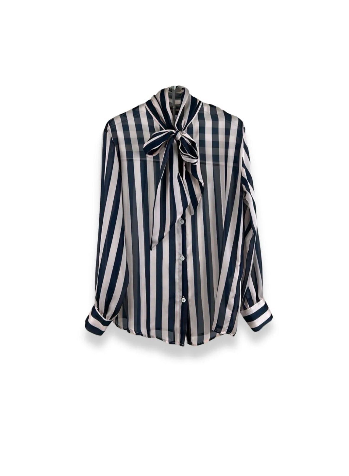 Camicia in tessuto leggero e fluido con una fantasia a righe verticali