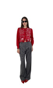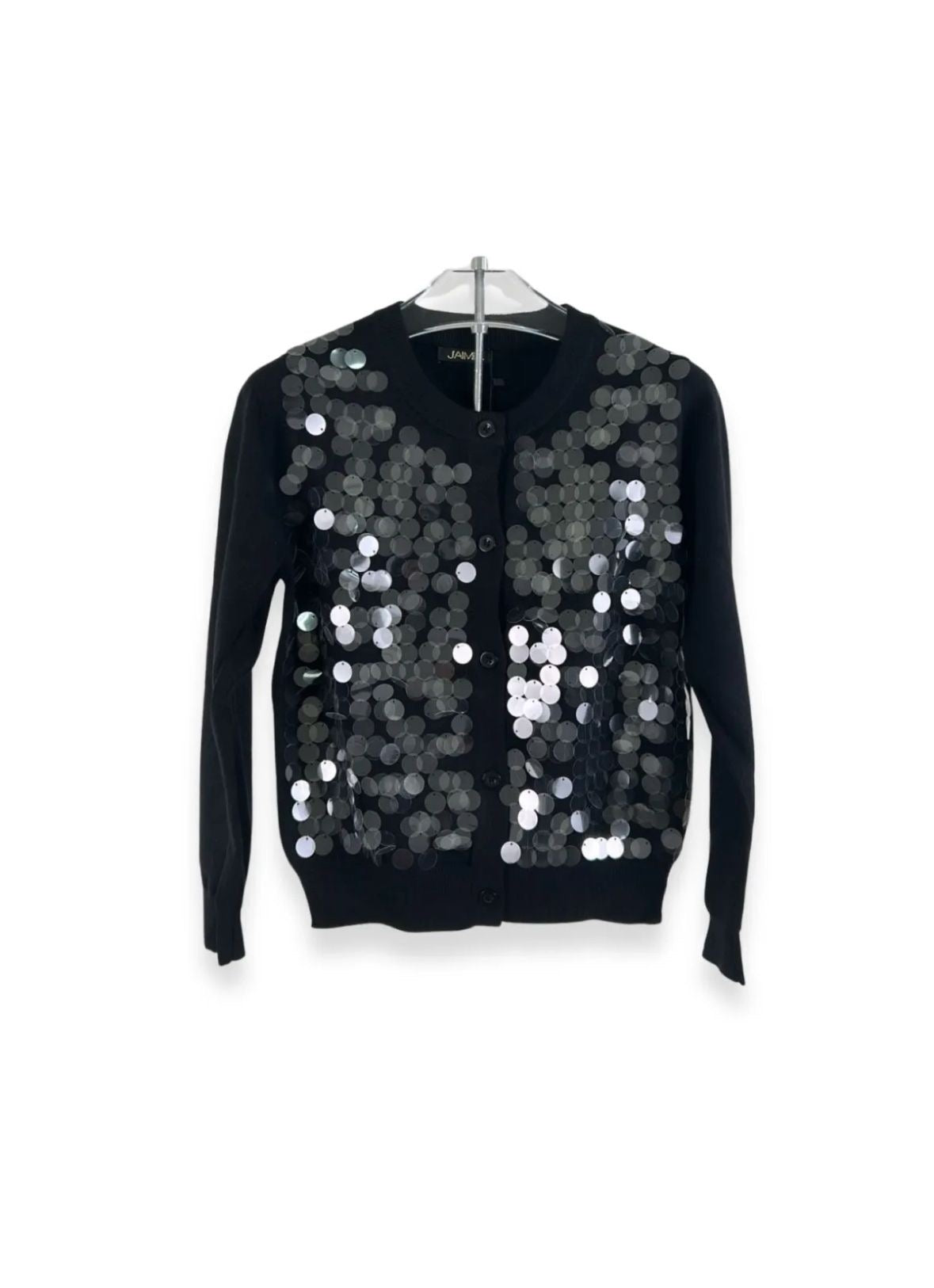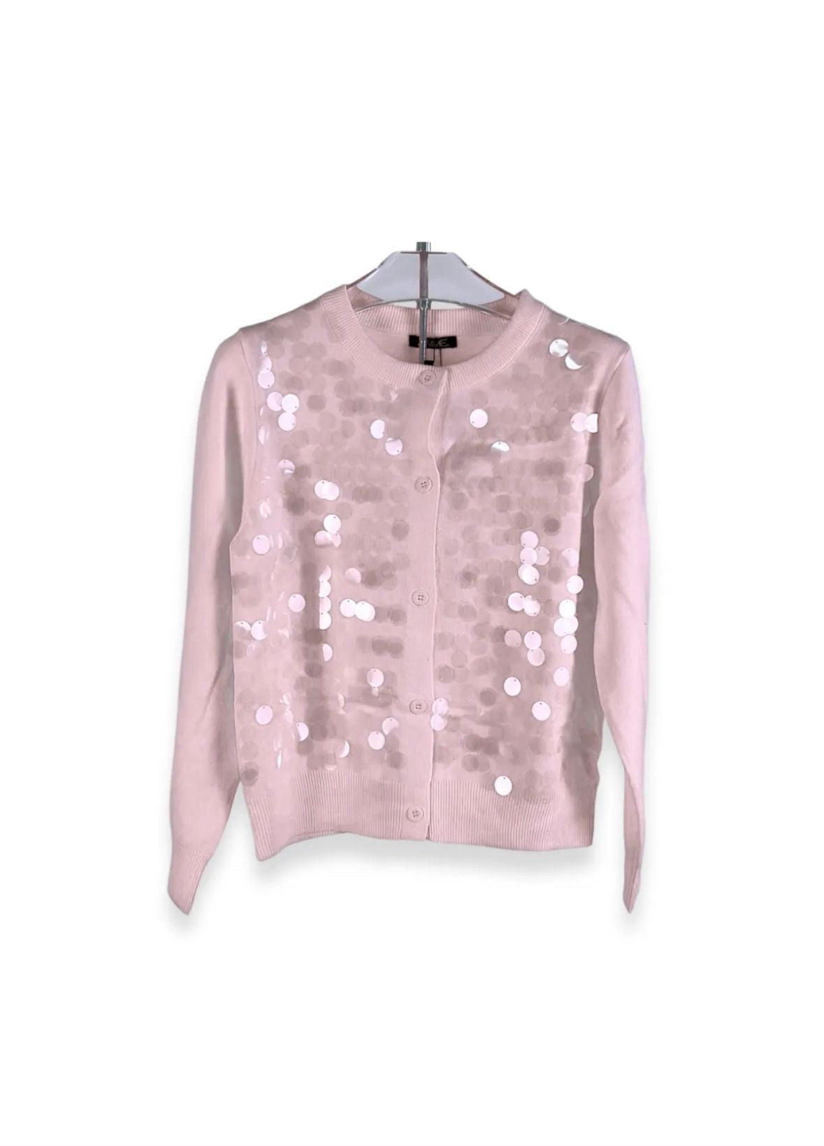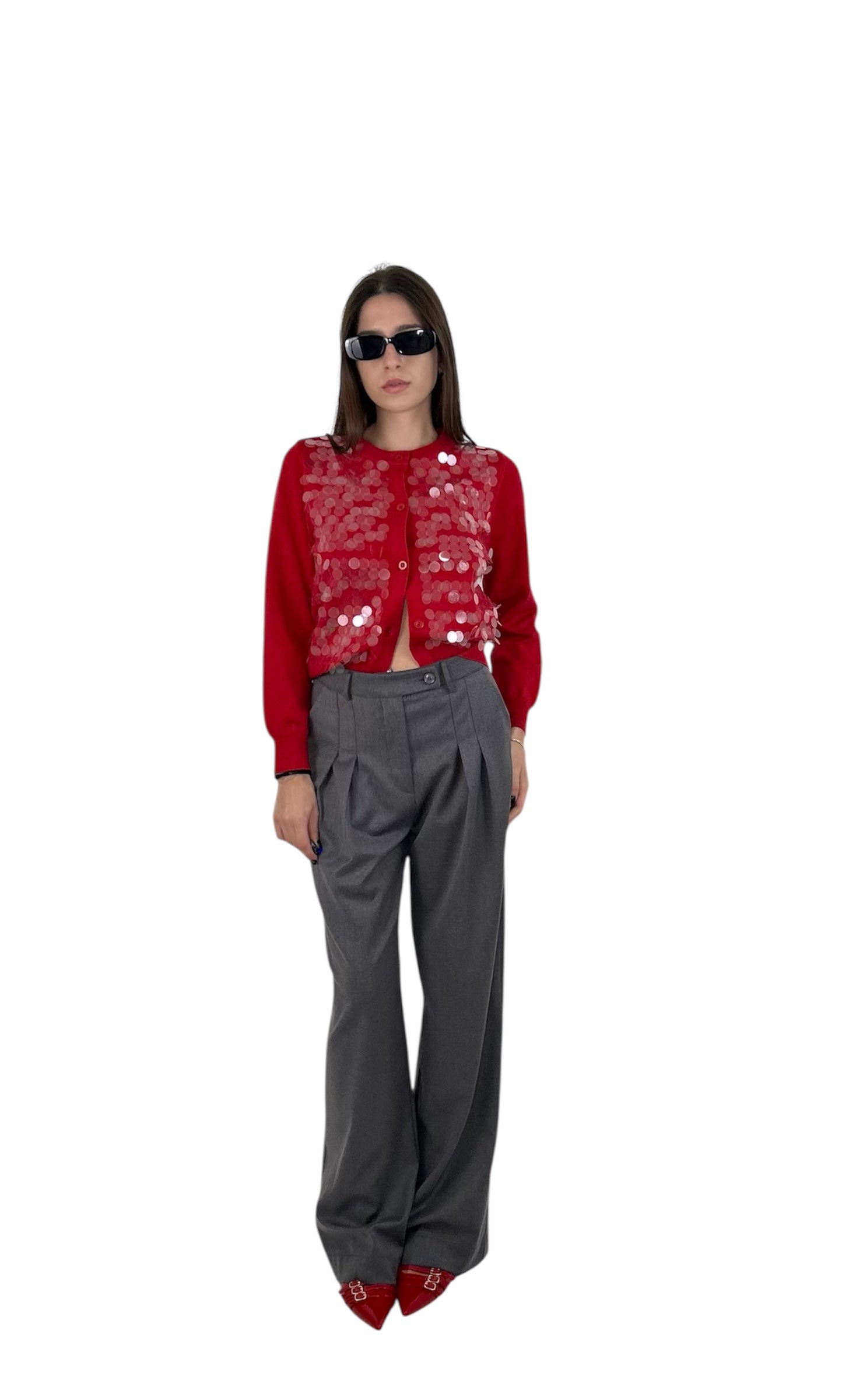 la particolarità del capo è data dalle paillettes grandi e rotonde applicate sulla parte anteriore che creano un effetto brillante e luminoso.