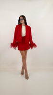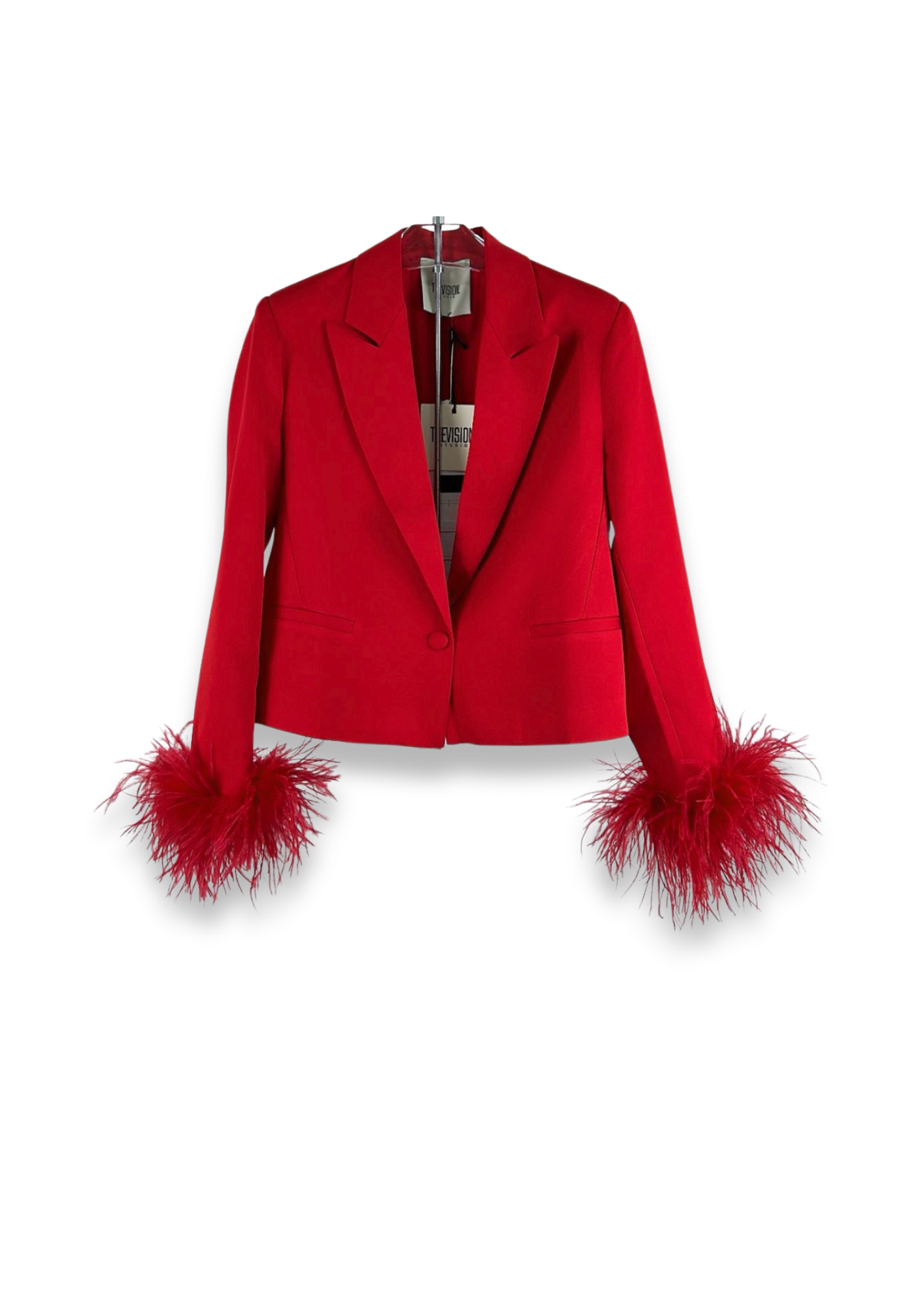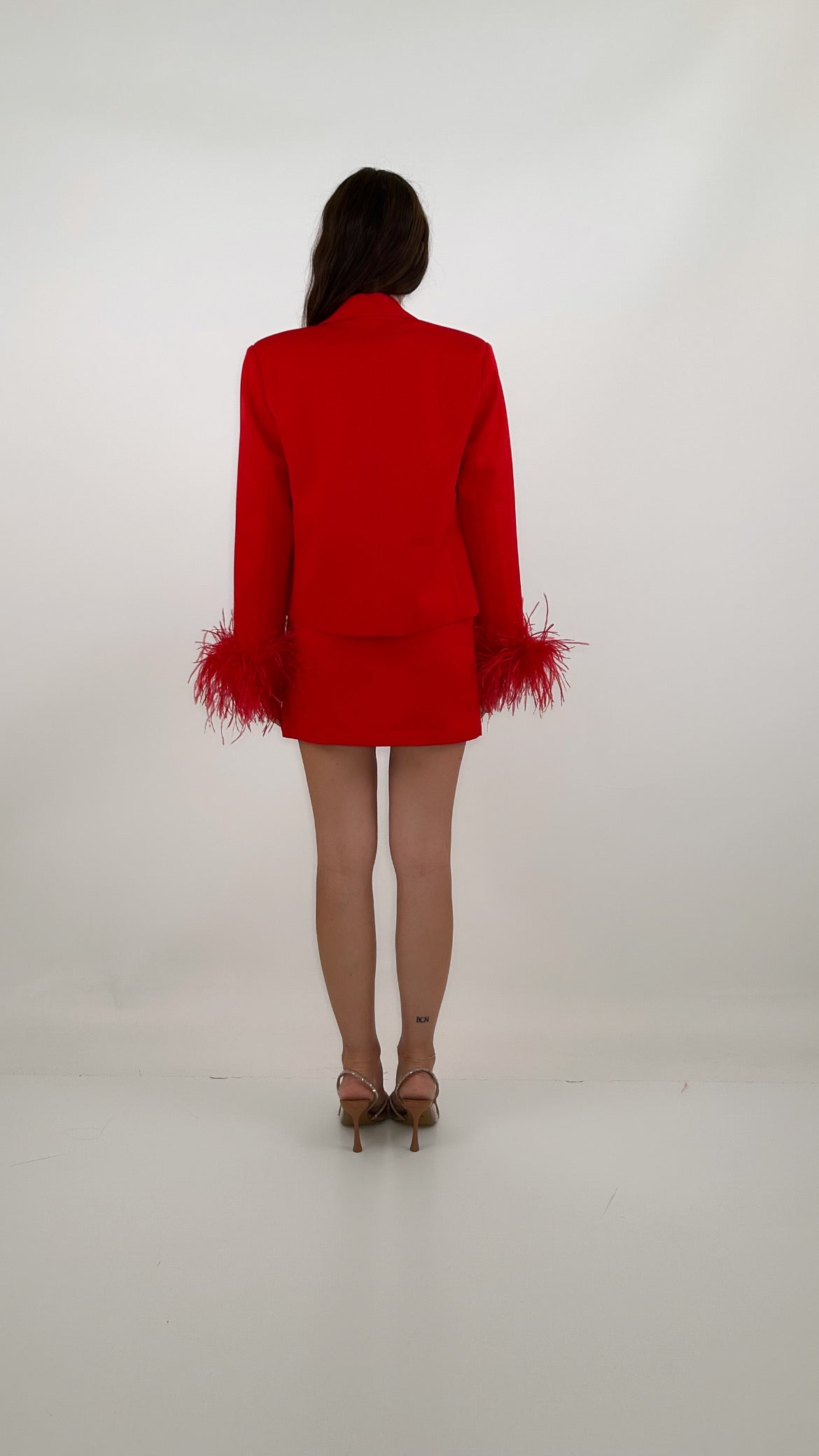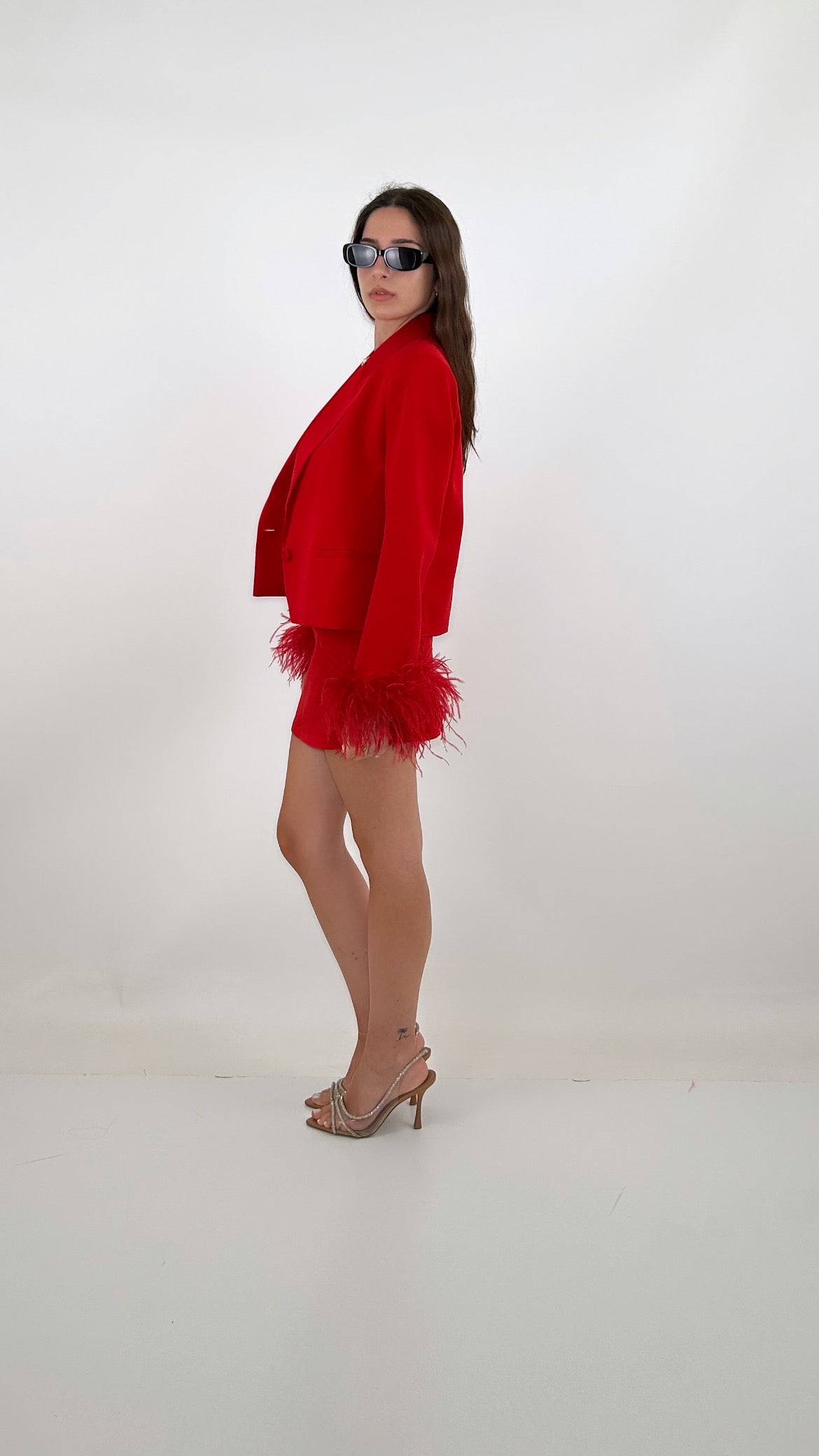 blazer corto (cropped) in un vivace e audace colore rosso fuoco.