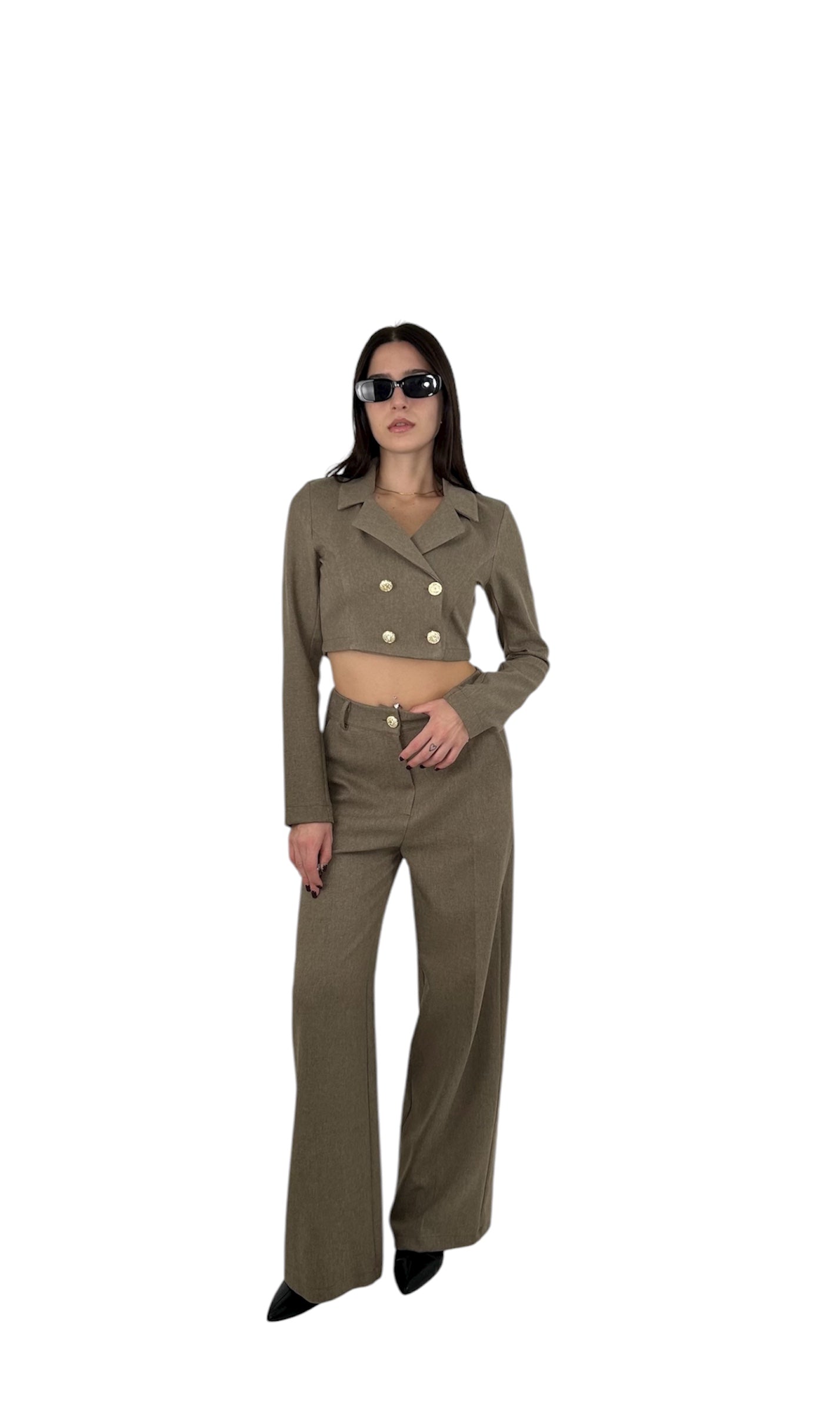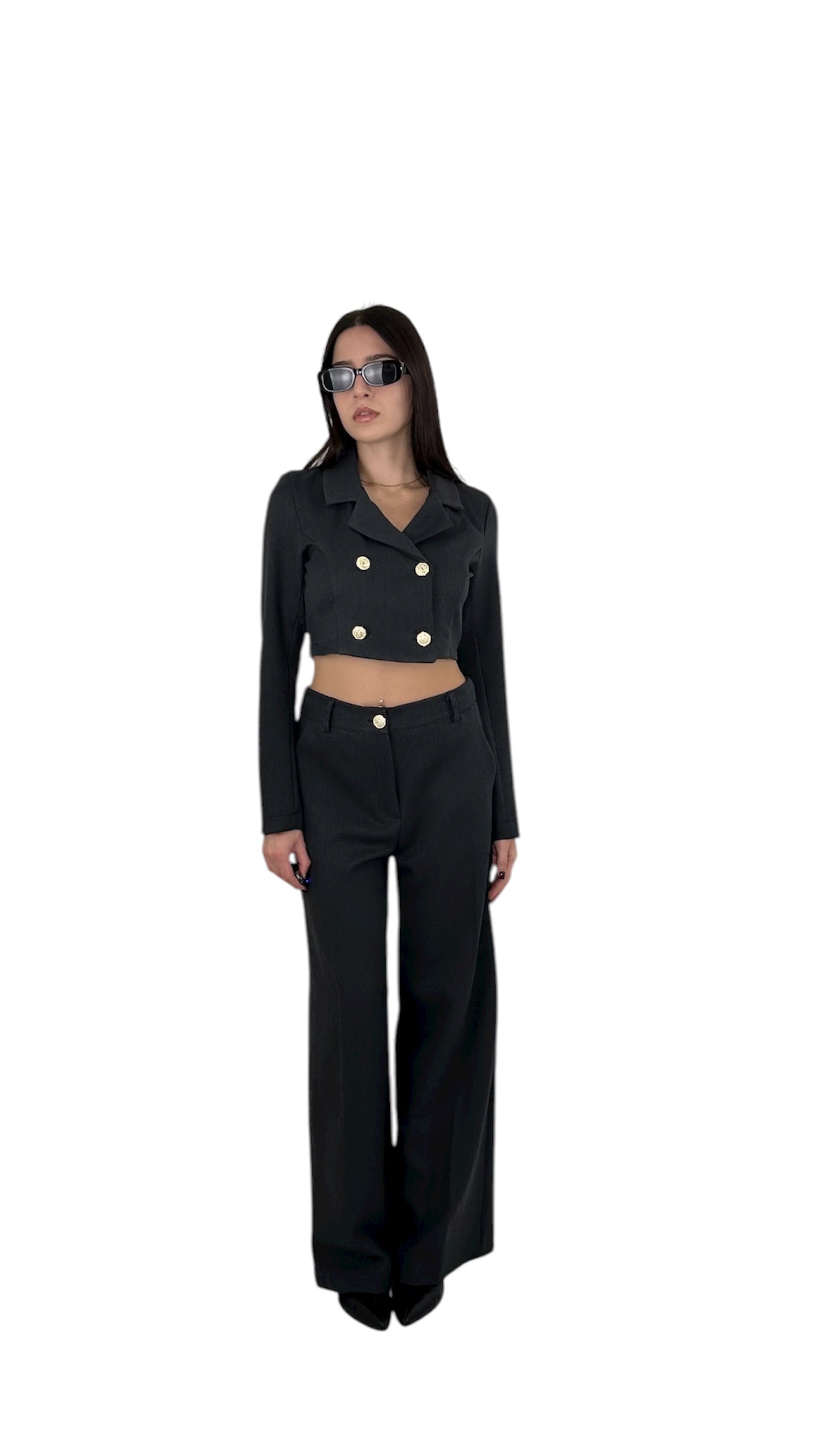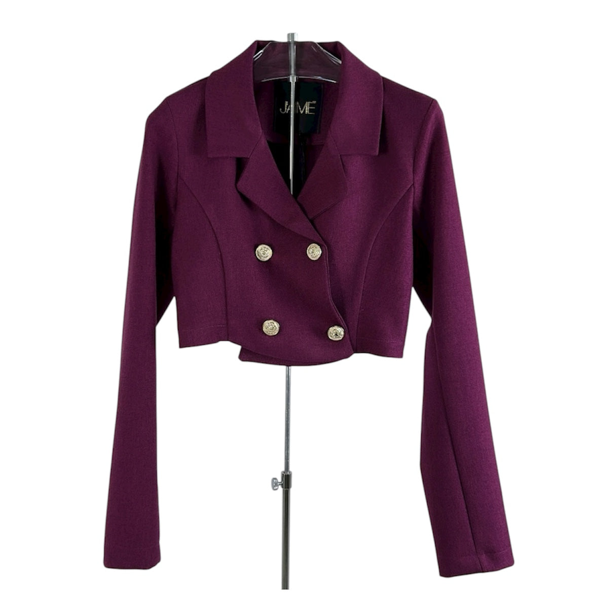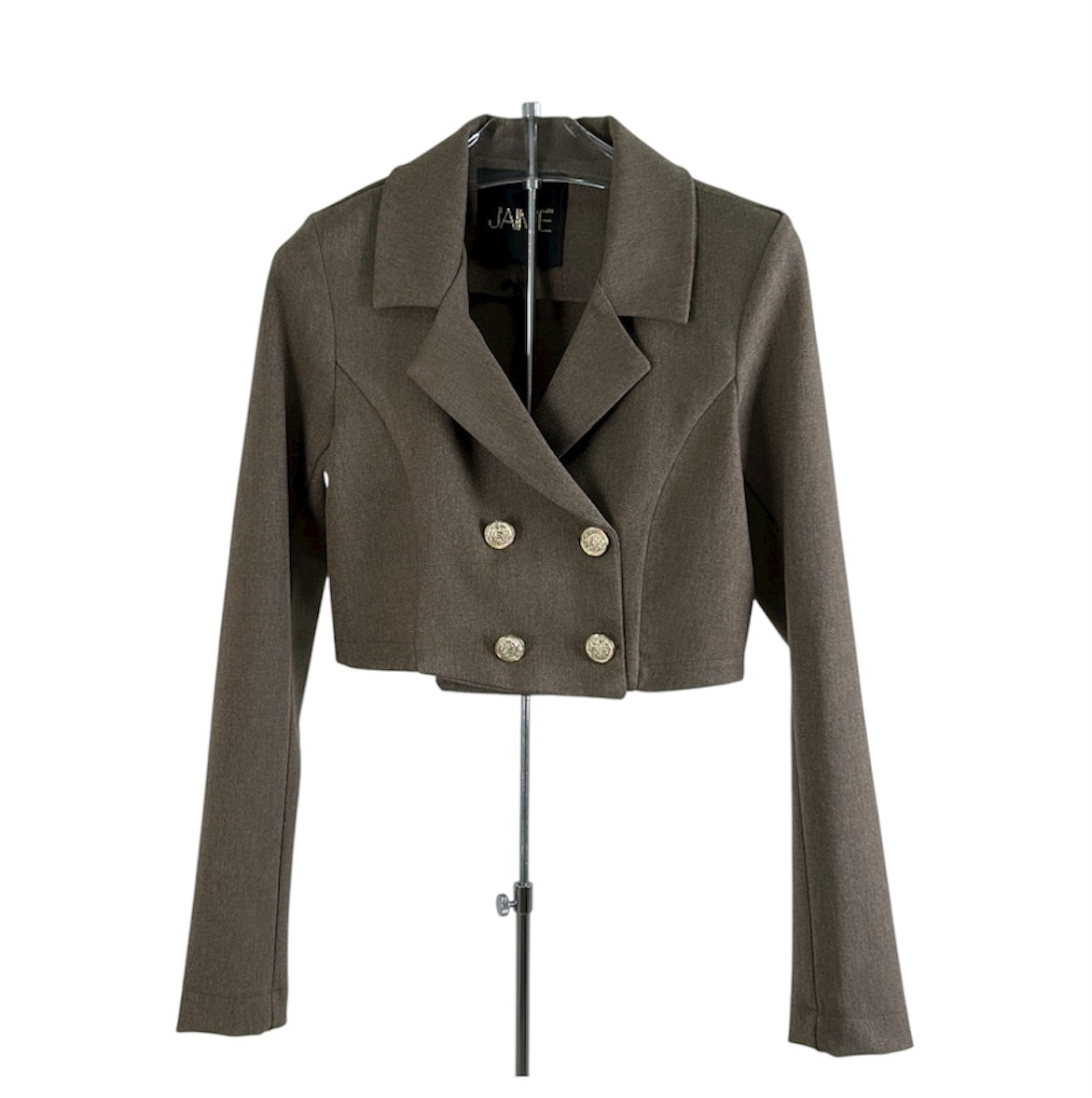 Blazer crop con scollo a revers e chiusura doppiopetto