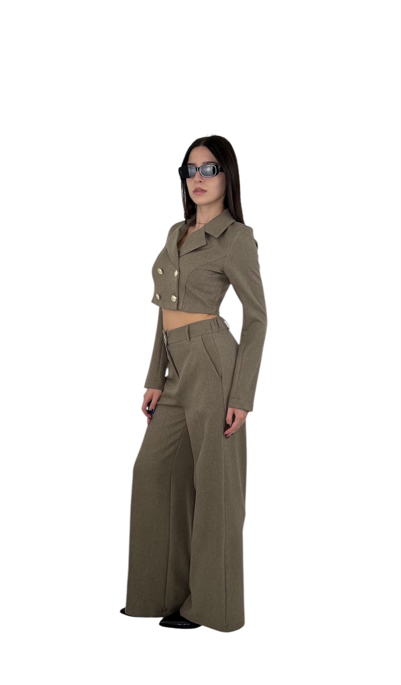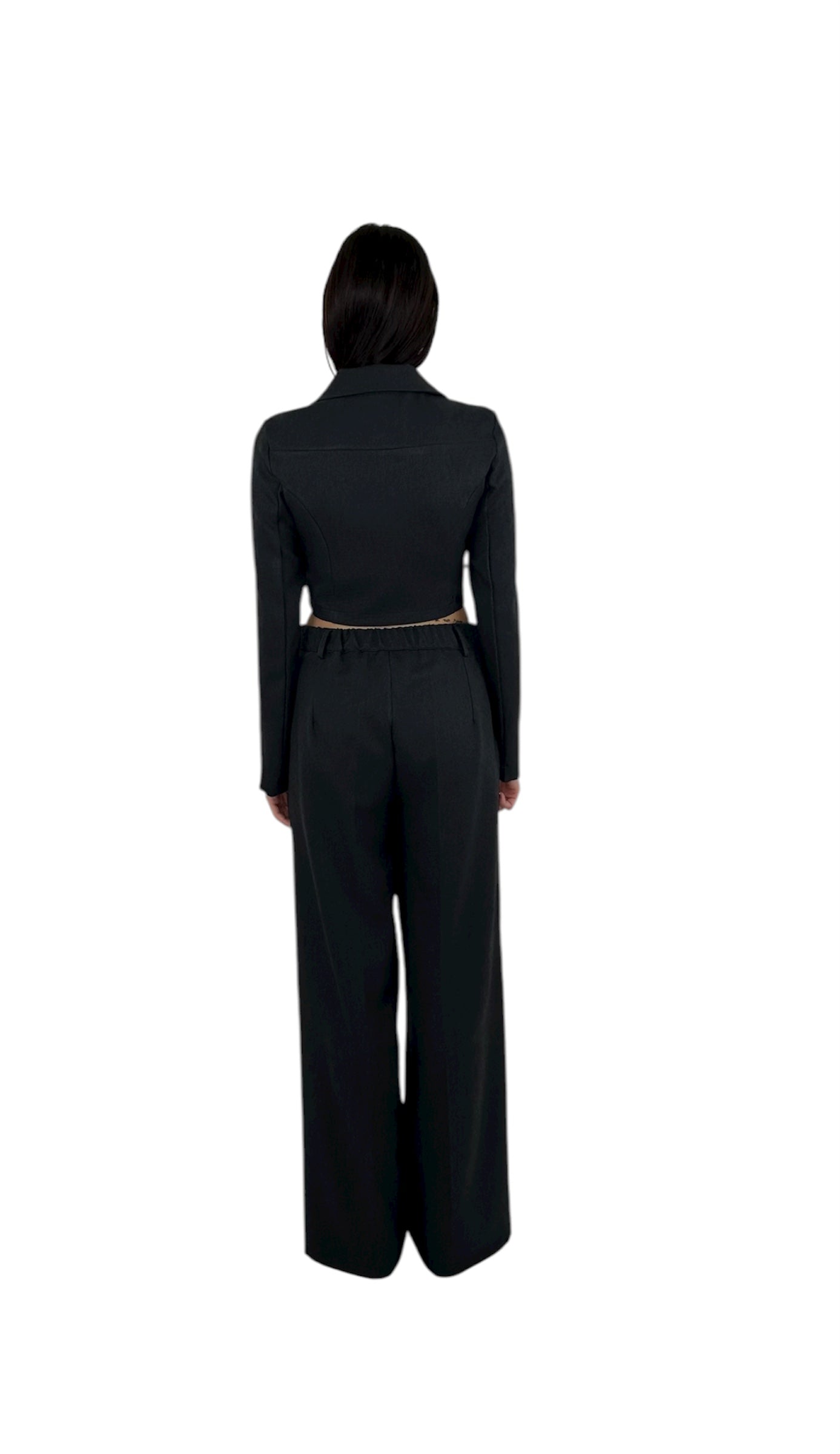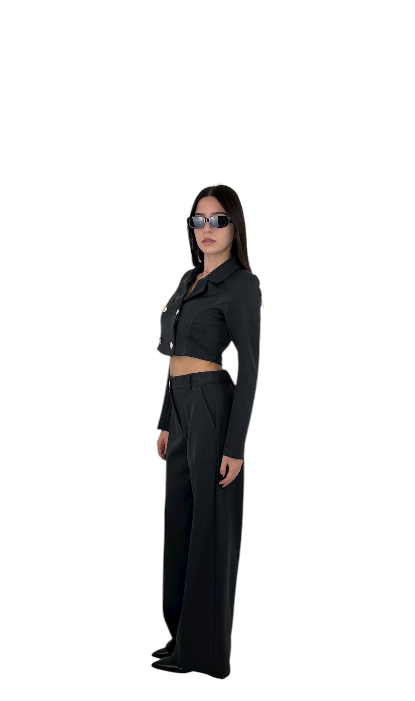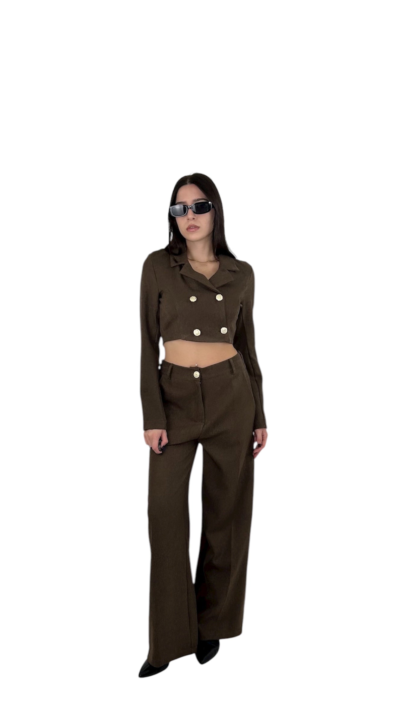 Blazer crop con scollo a revers e chiusura doppiopetto
