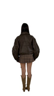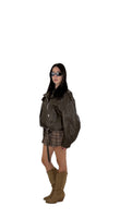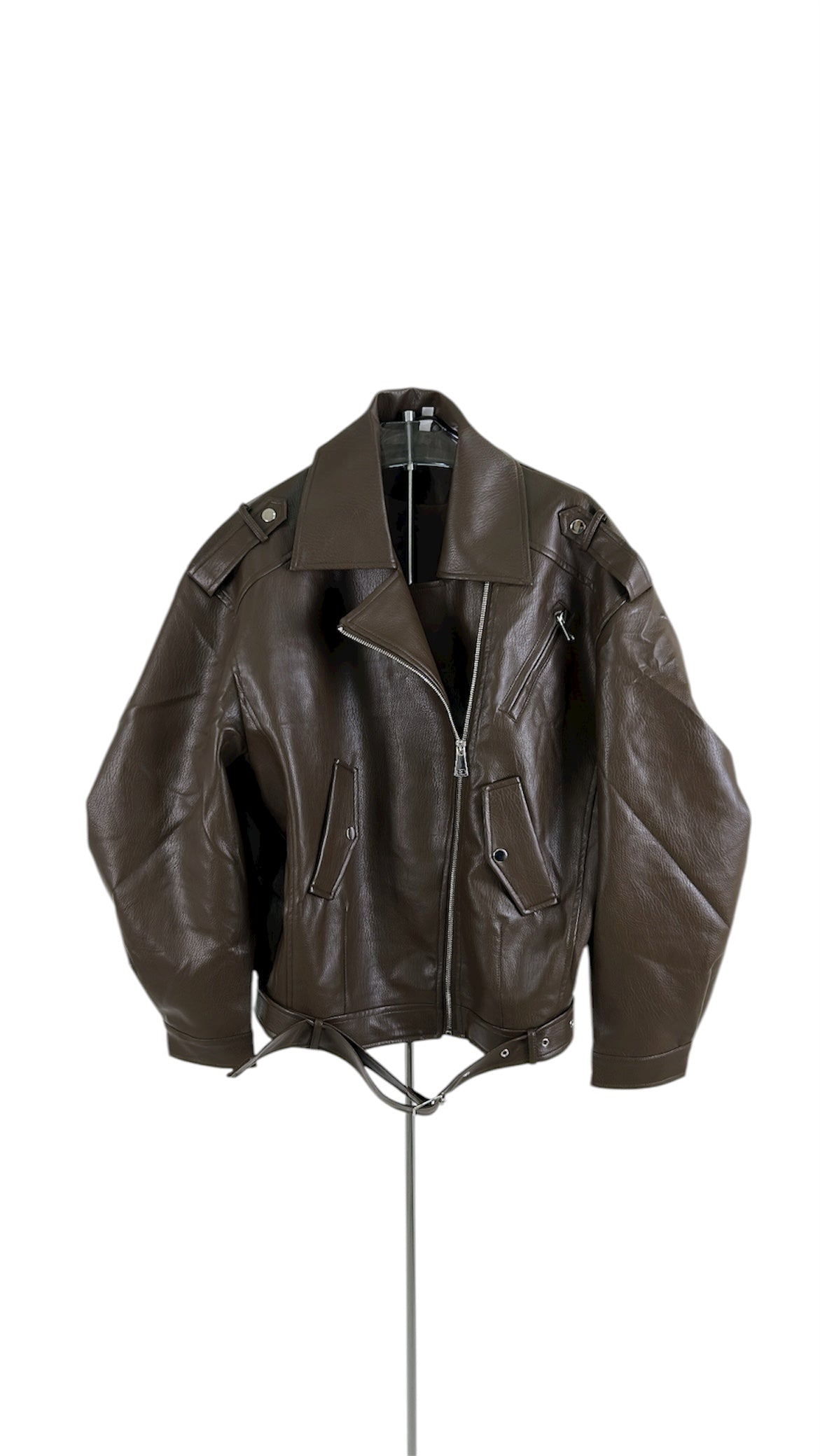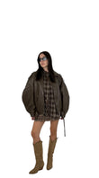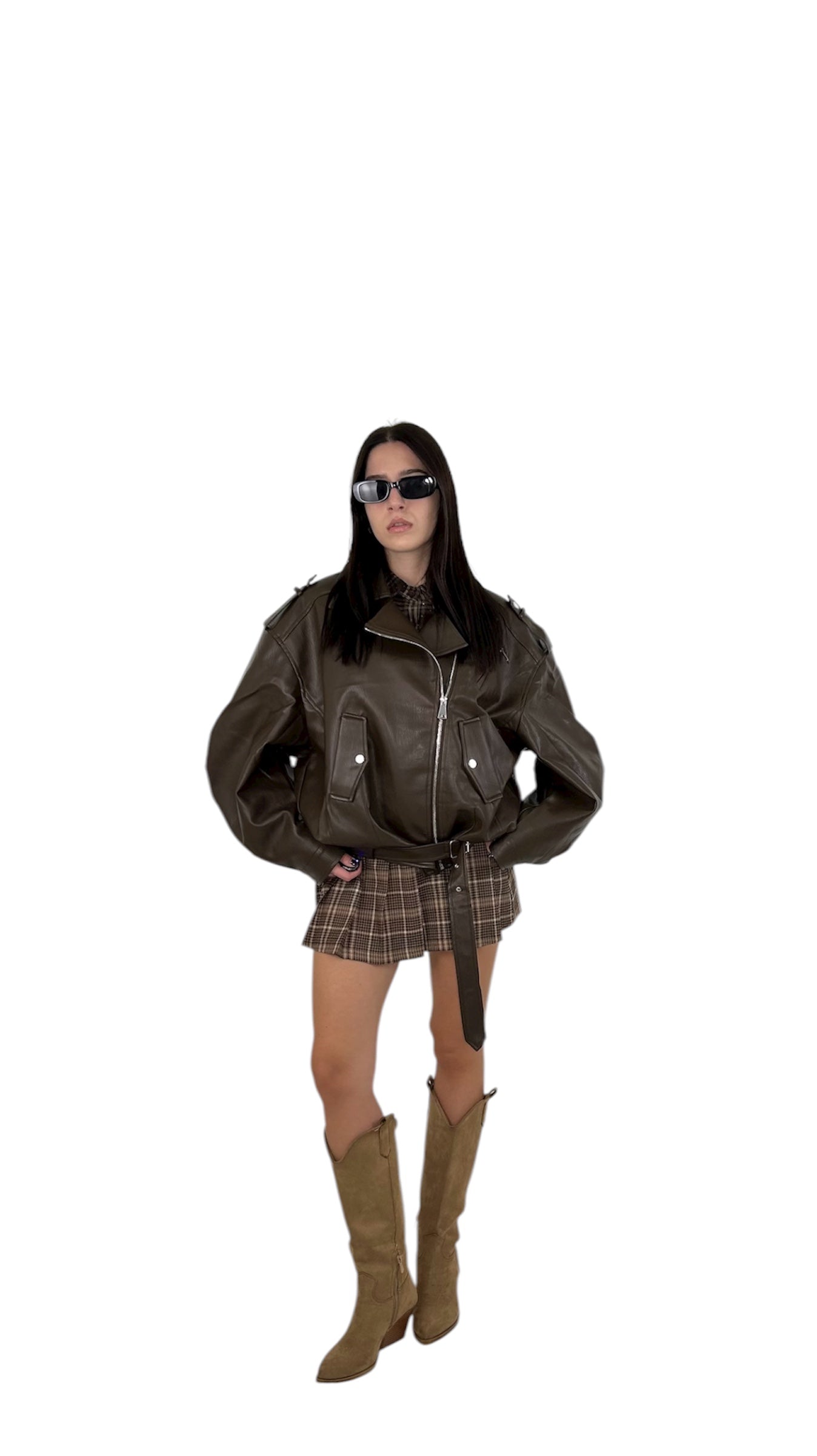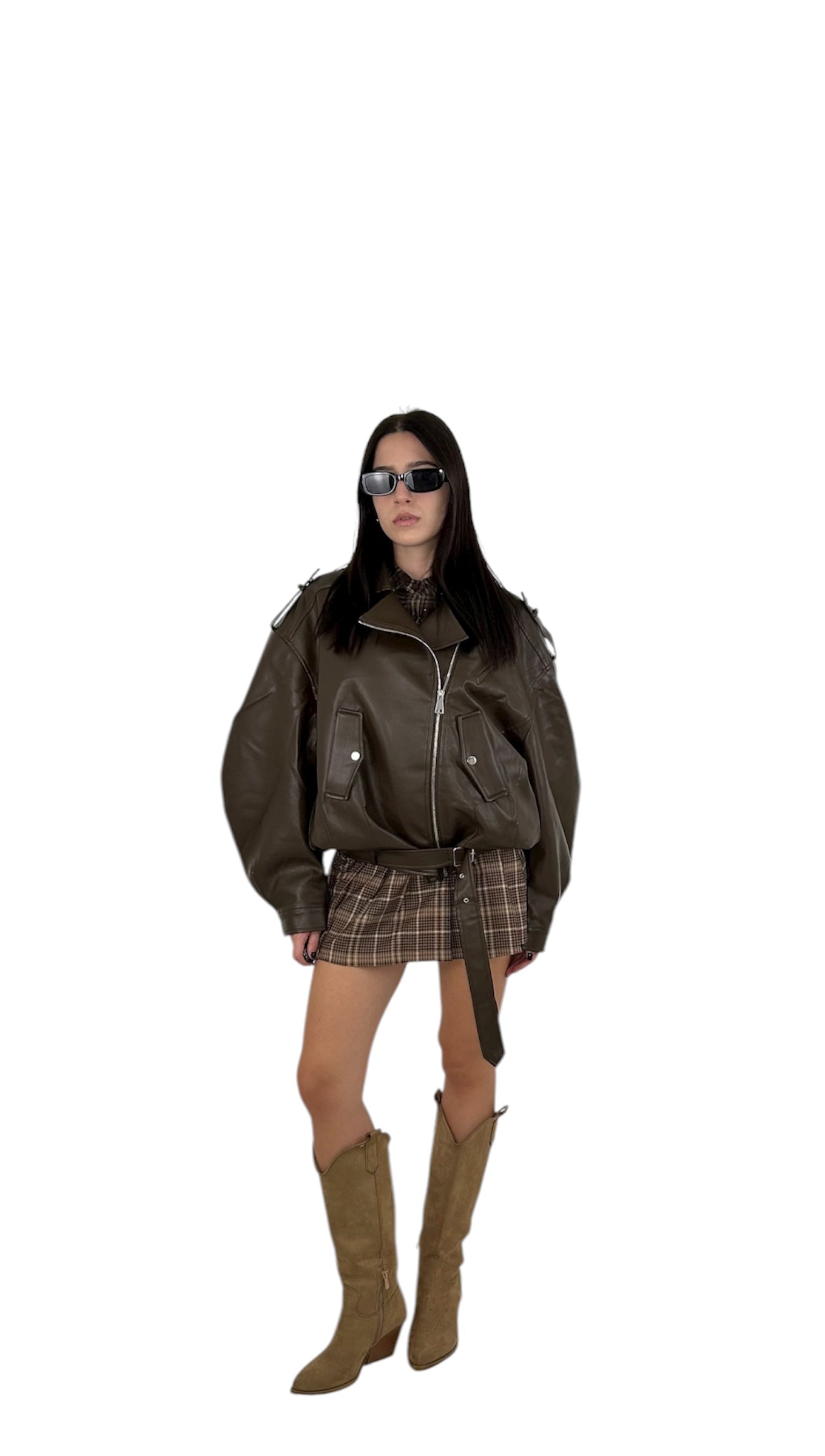 presenta una zip frontale asimmetrica e dettagli come tasche con patta e bottone