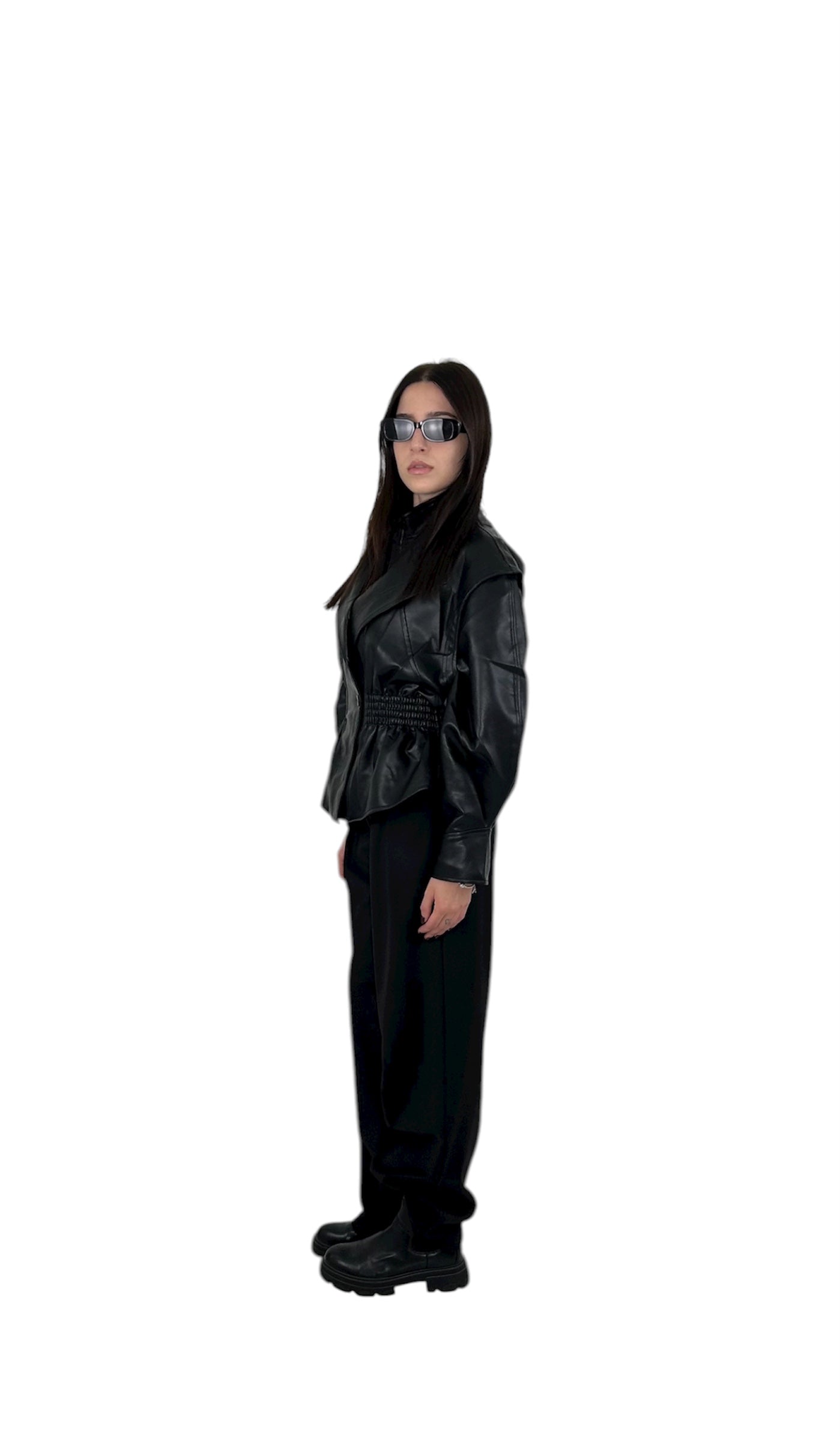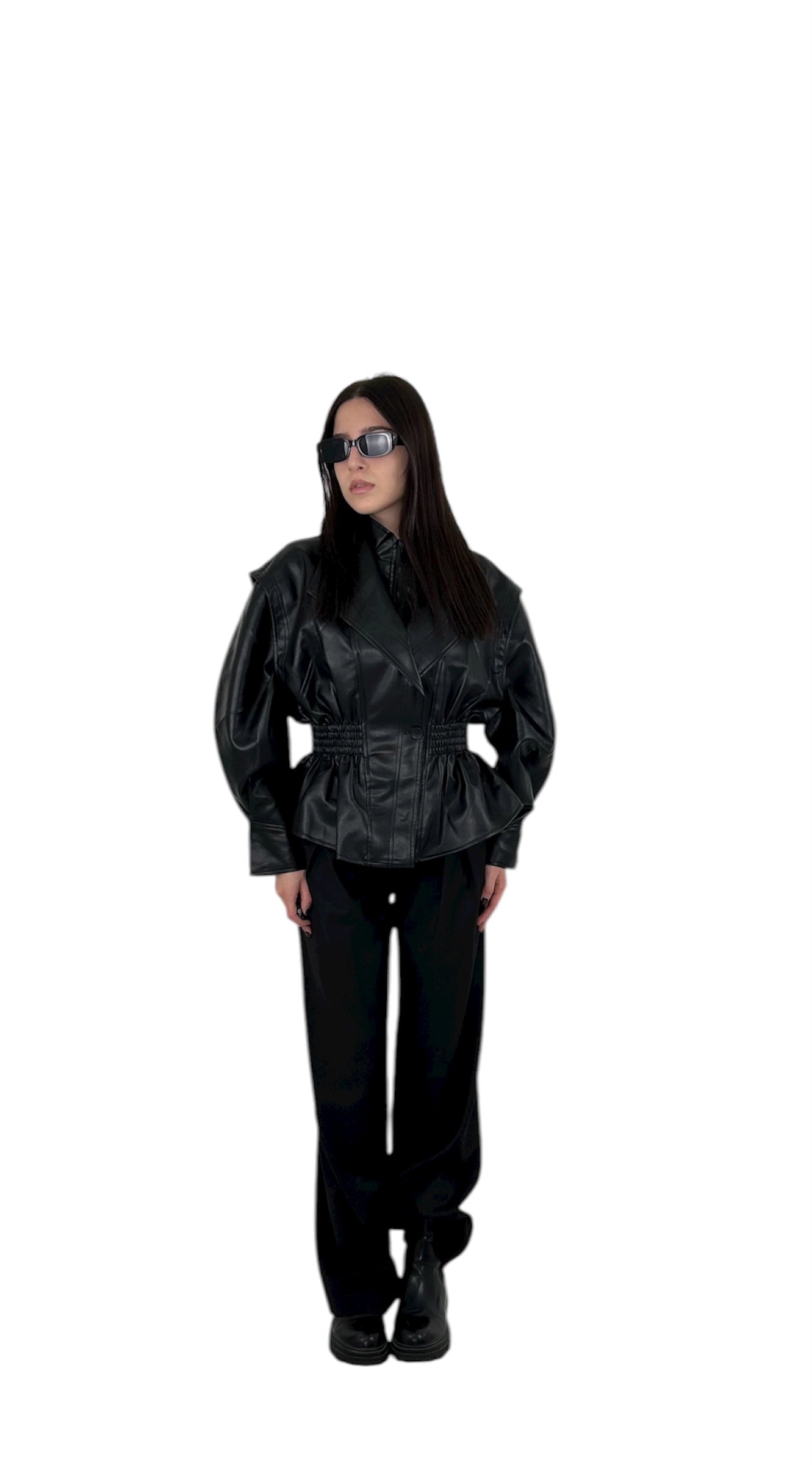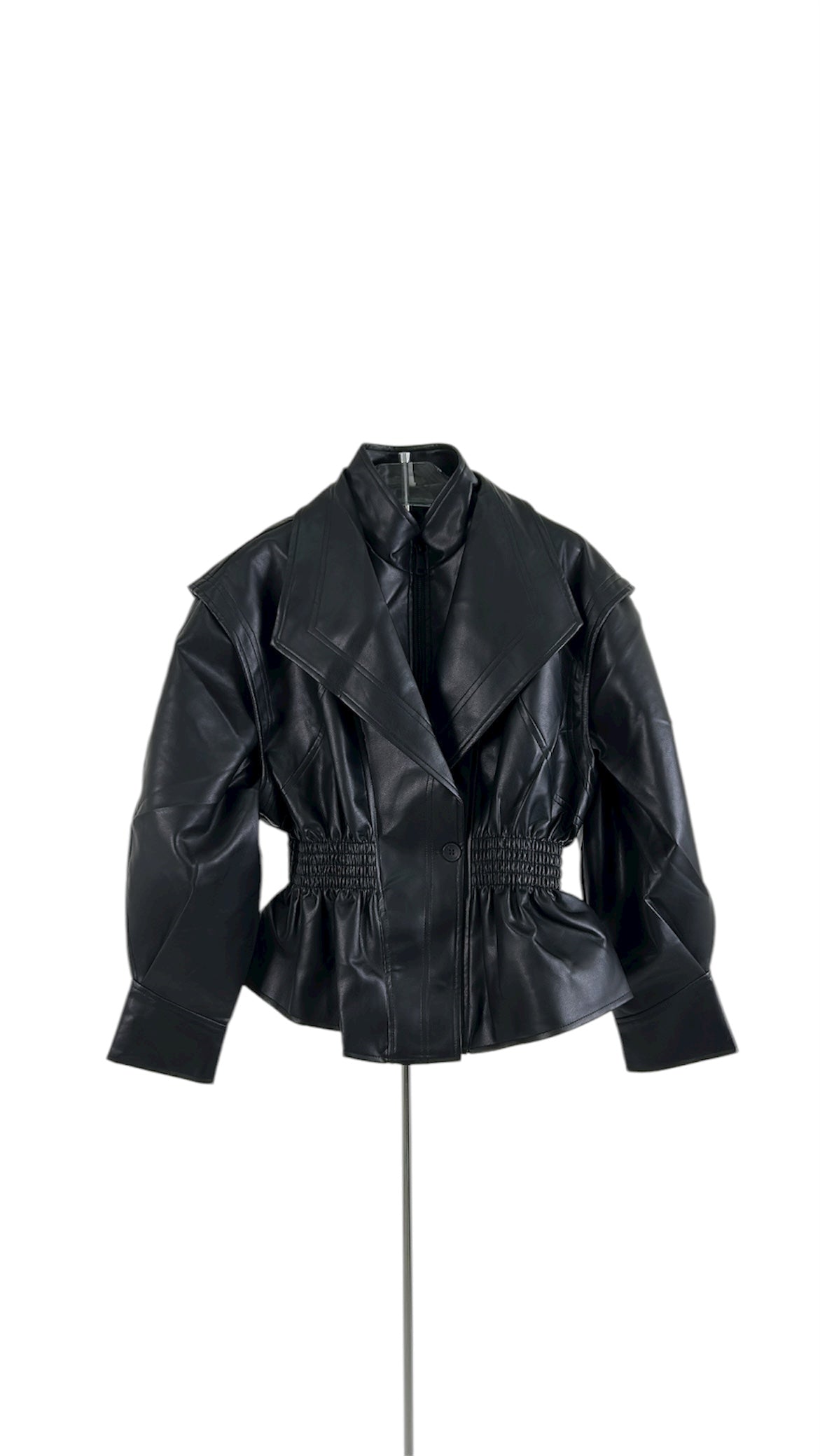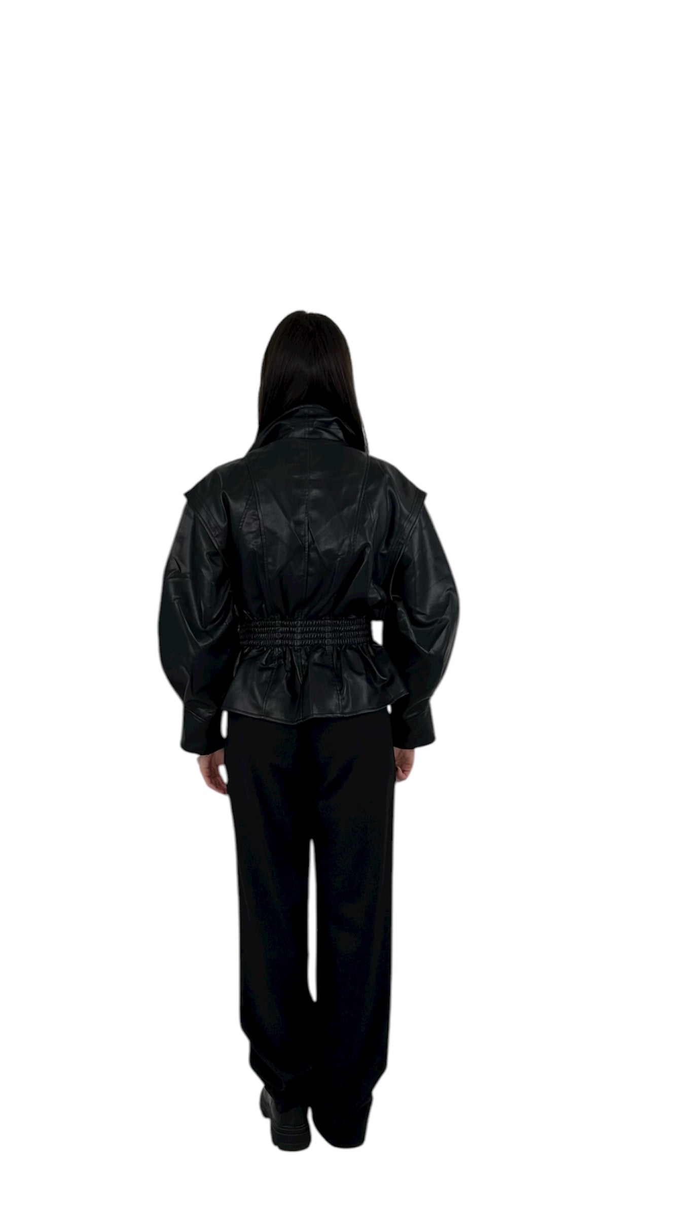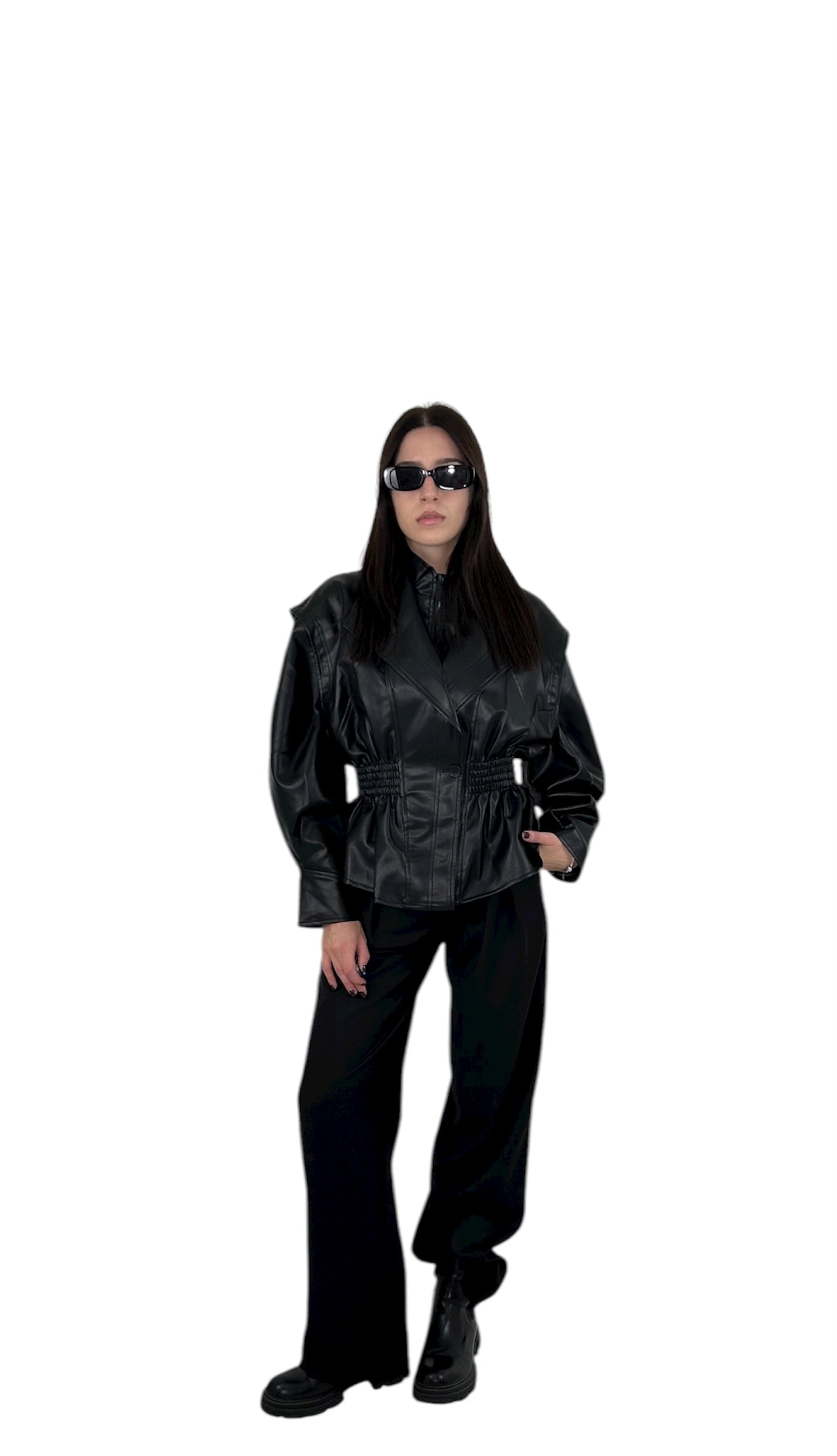 Giubbotto in similpelle nera con design strutturato