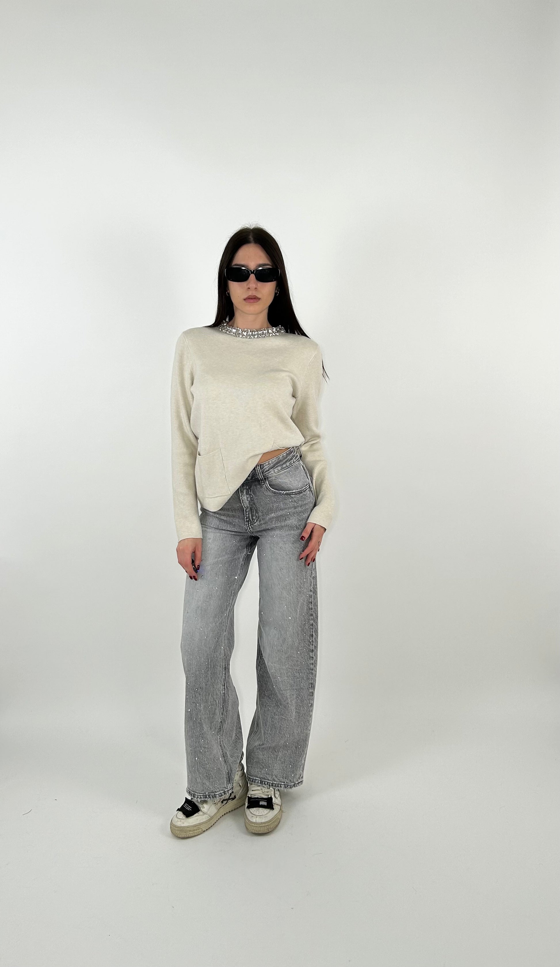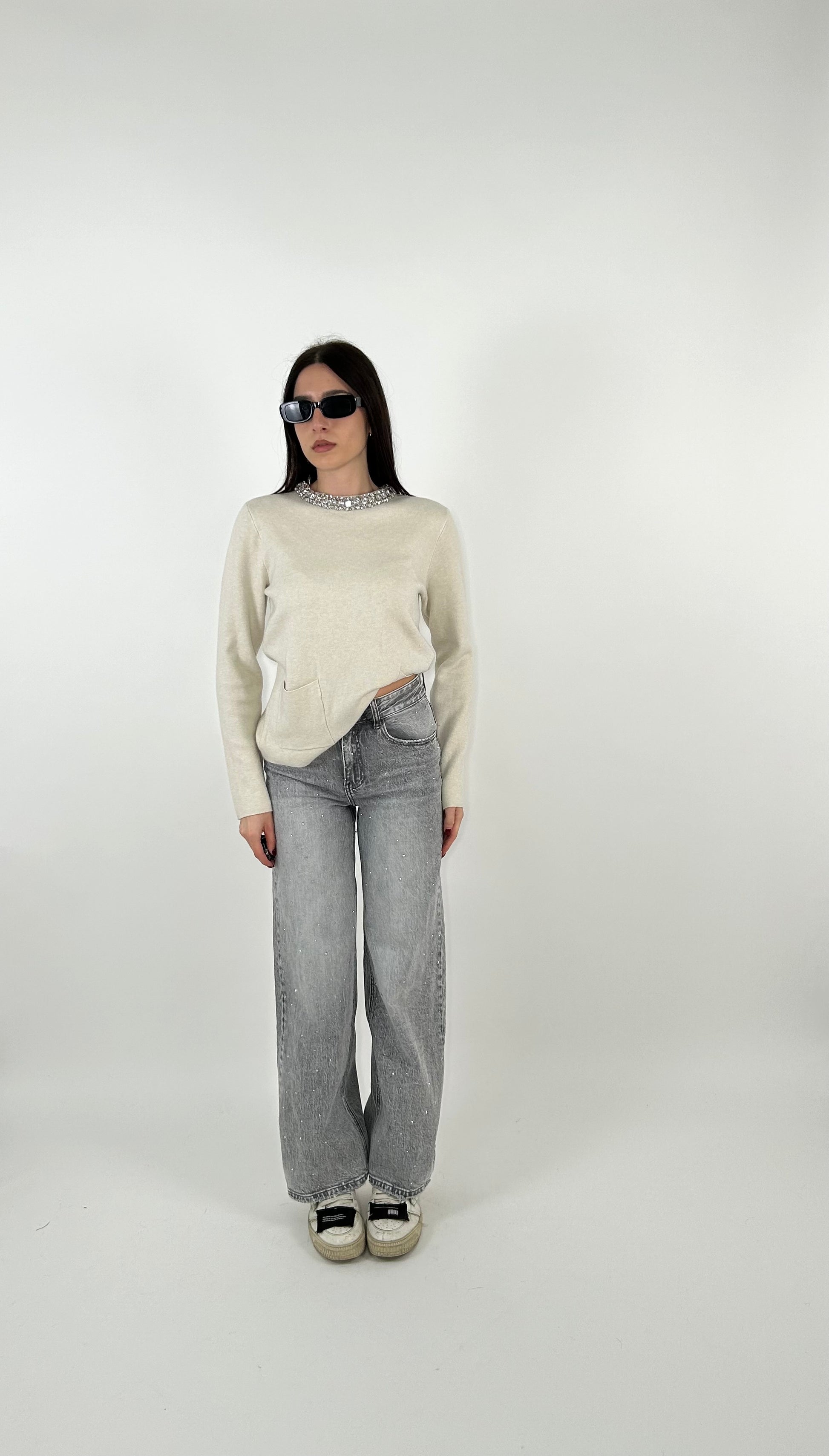 Jeans grigi brillantinati