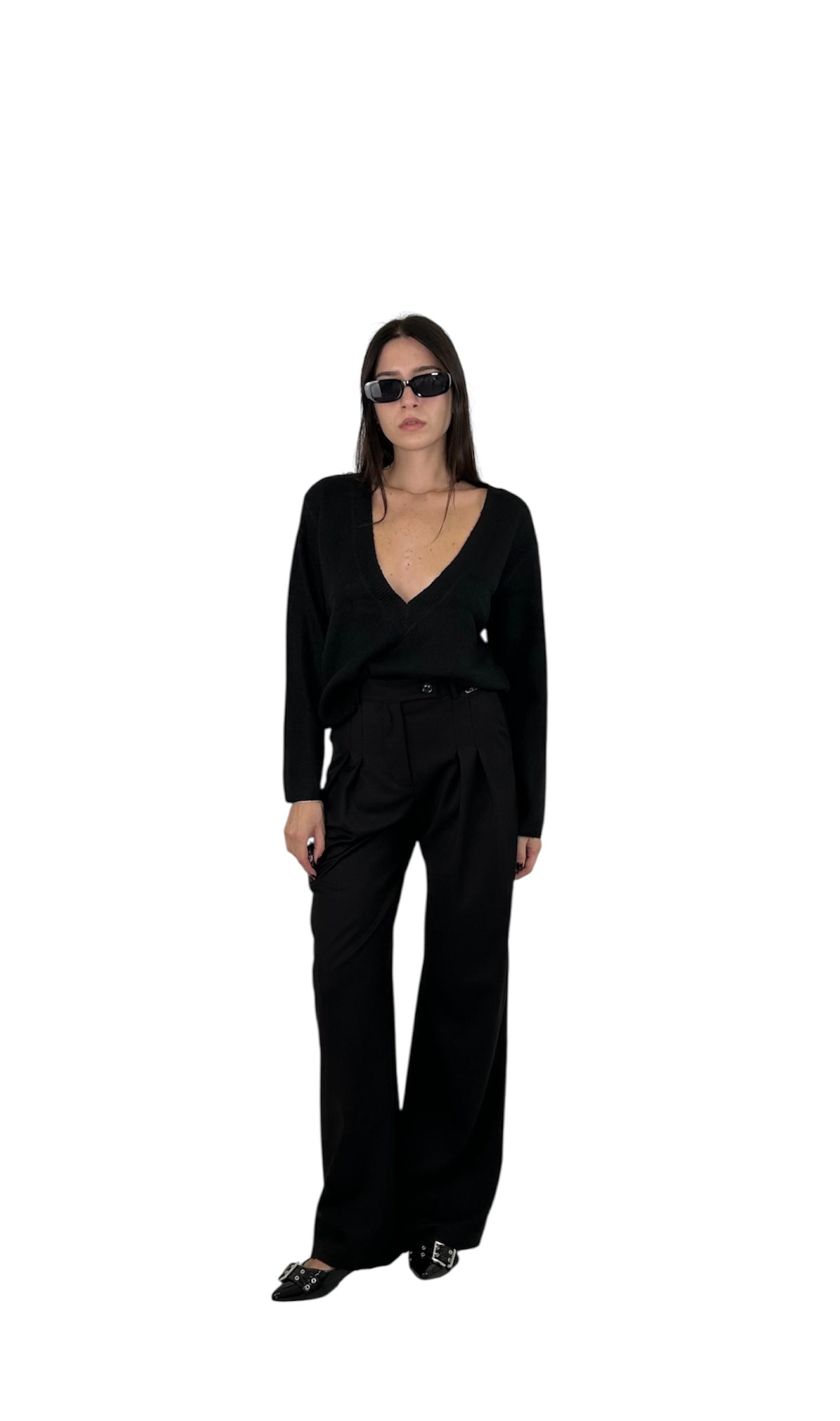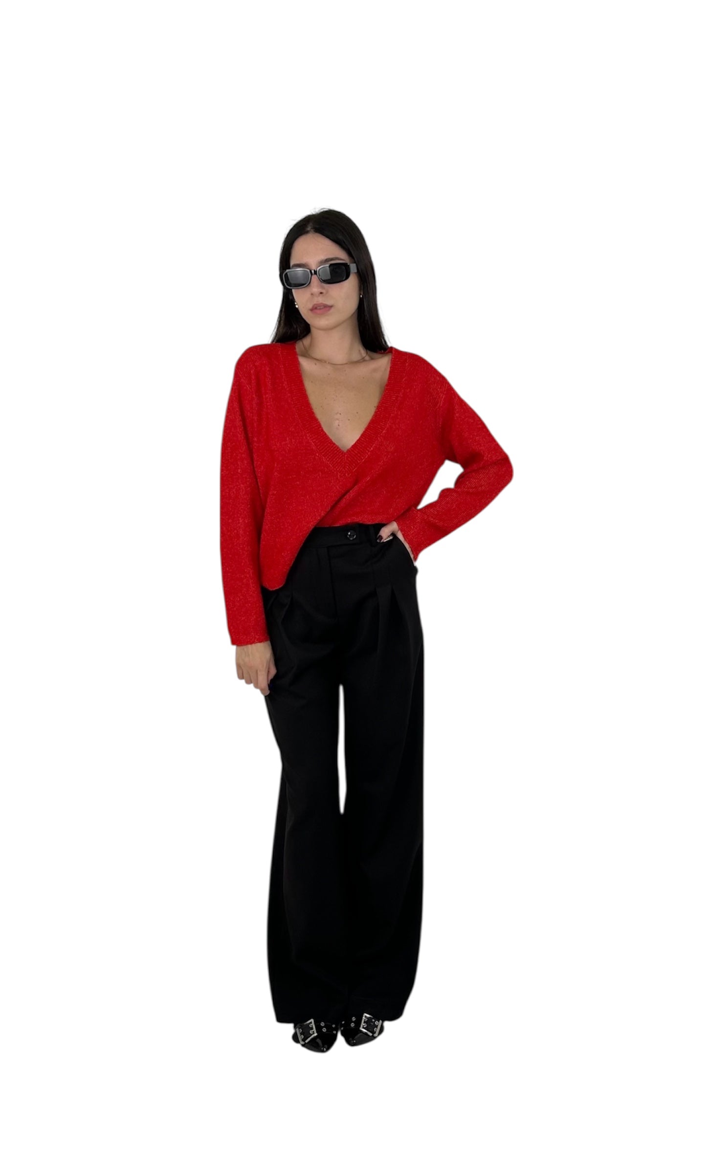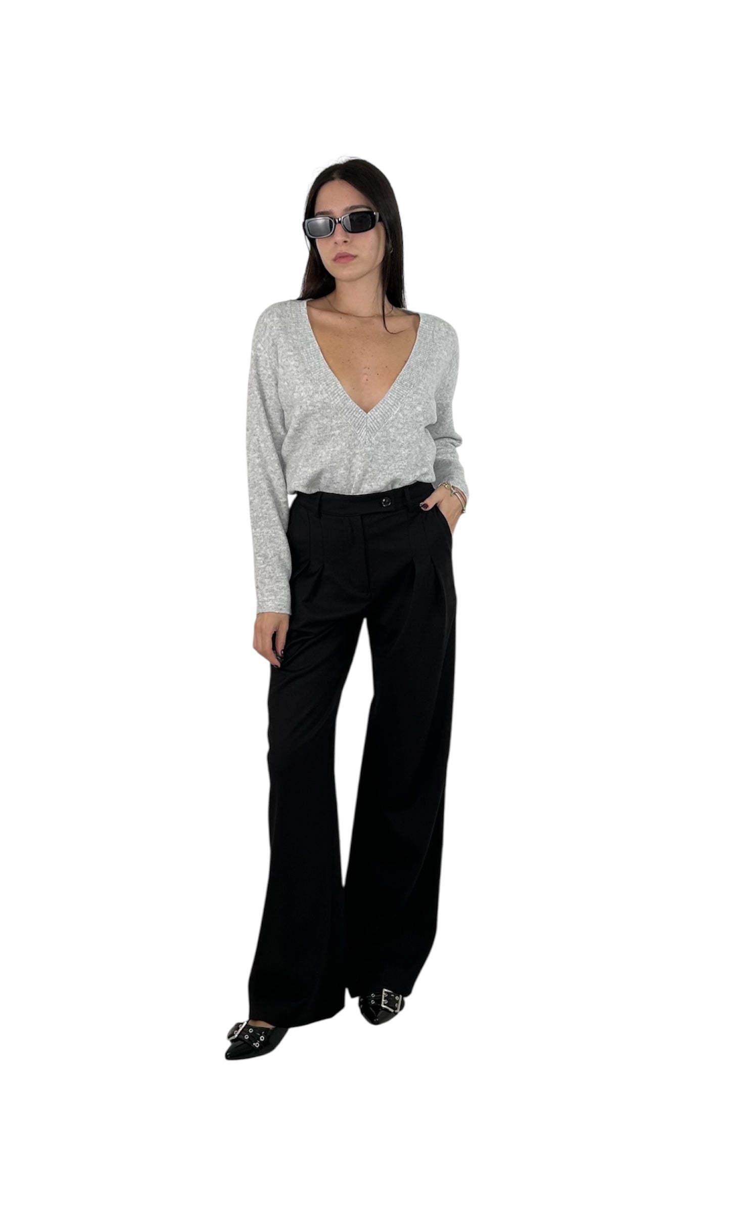 Maglione con scollo a V molto profonda, rifinita con una fascia a costine