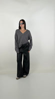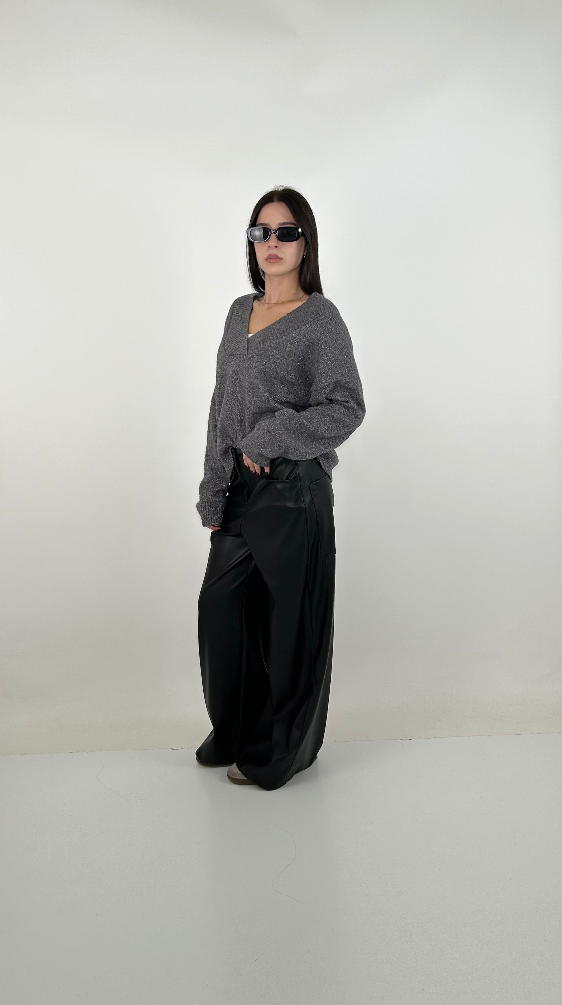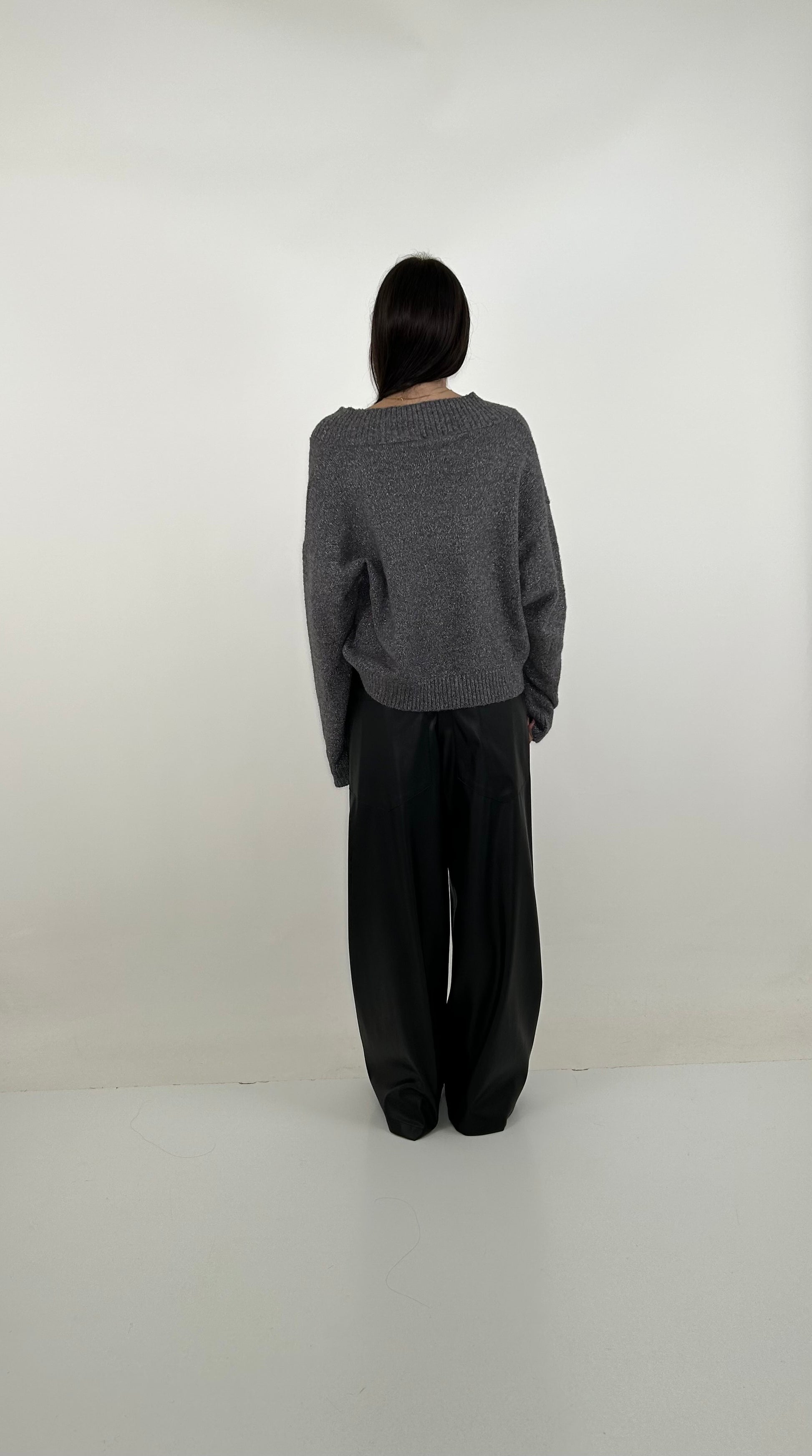 Questo Maglione 19209 ha uno stile unico con il suo scollo sul davanti e i contrasti a costine. Ti terrà caldo durante i giorni più freddi grazie al suo design over e al colore grigio. Aggiungi un tocco di eleganza al tuo look con questo maglione di alta qualità.