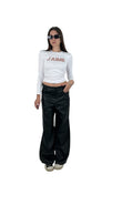 vita bassa con passanti per cintura, chiusura con bottone e zip