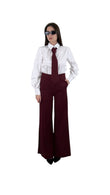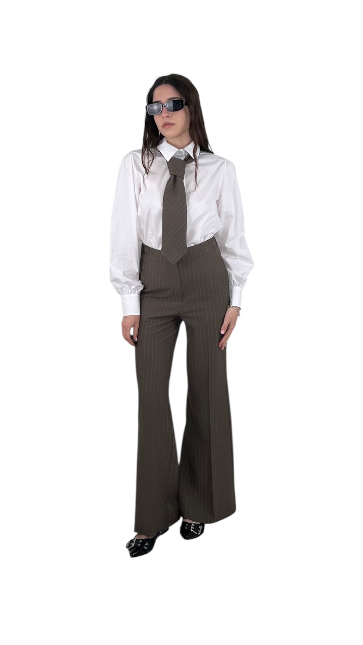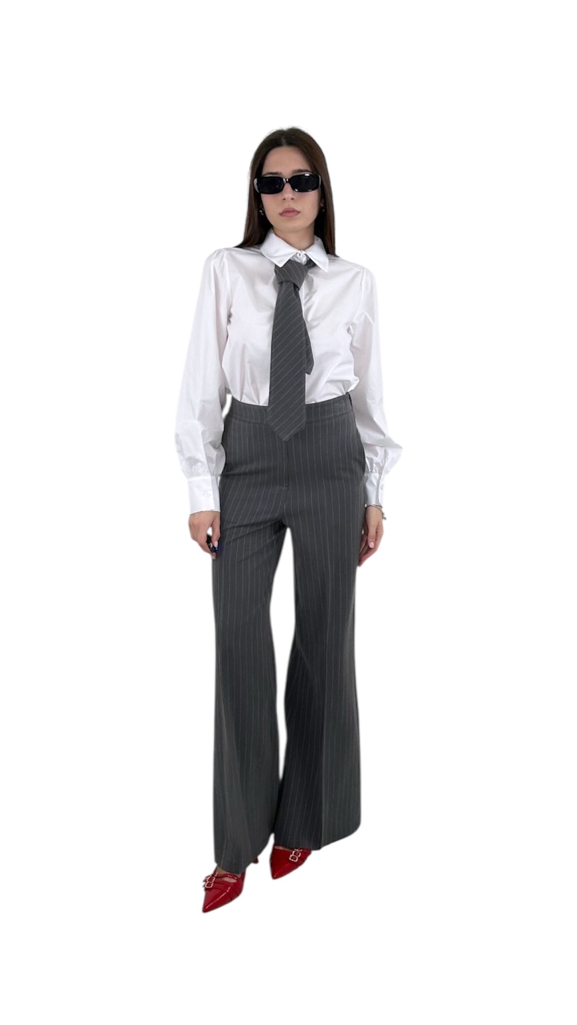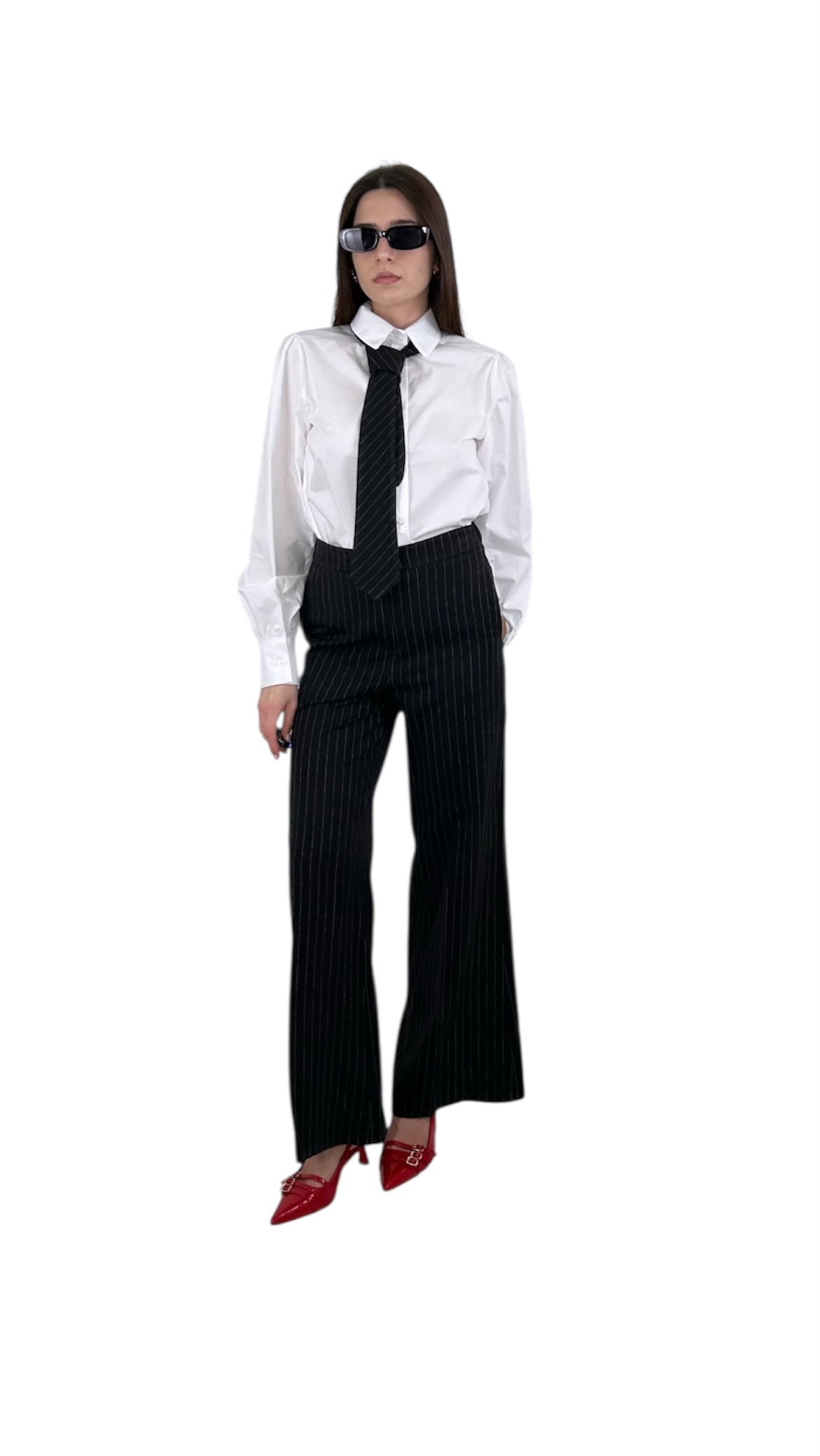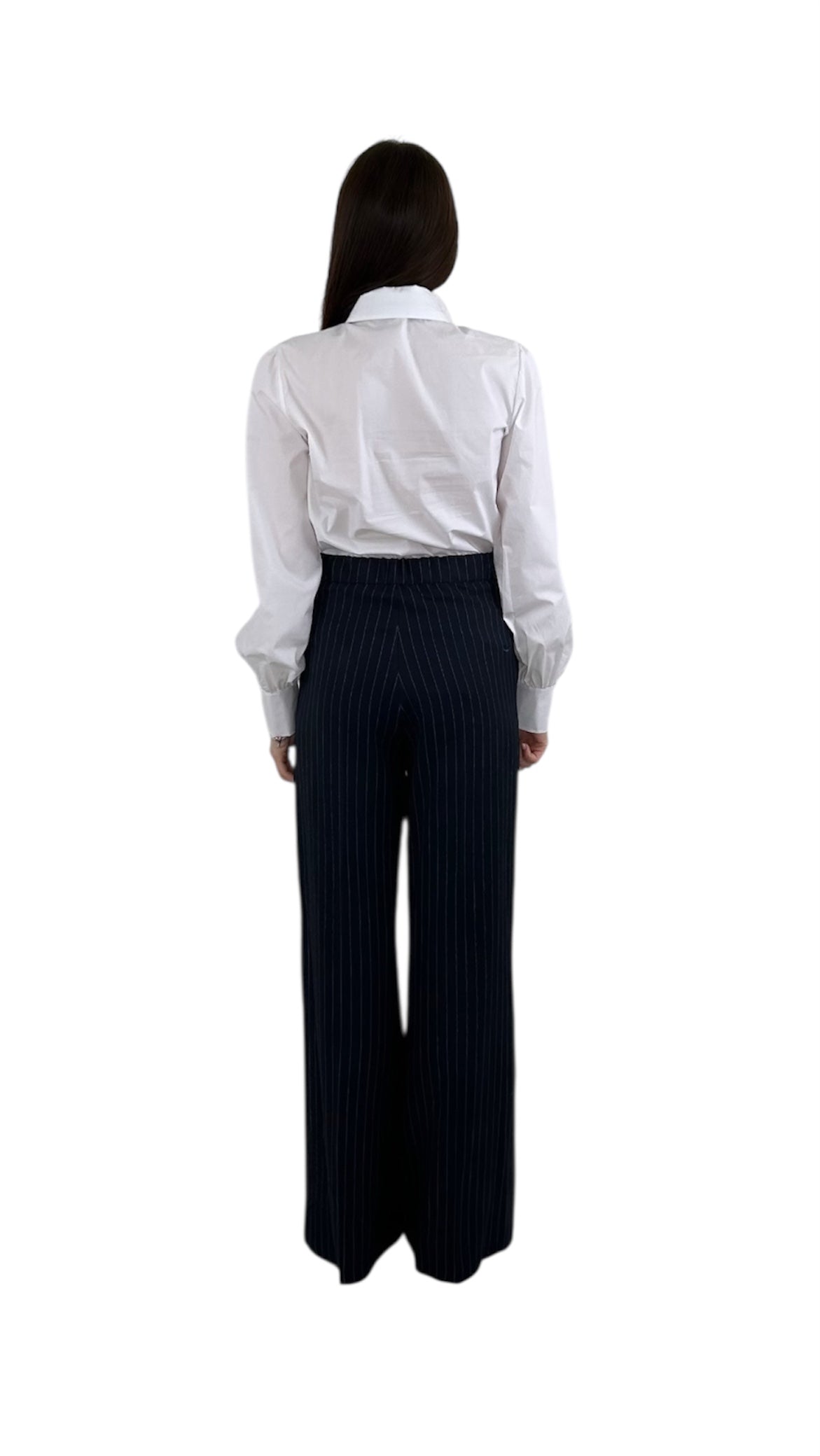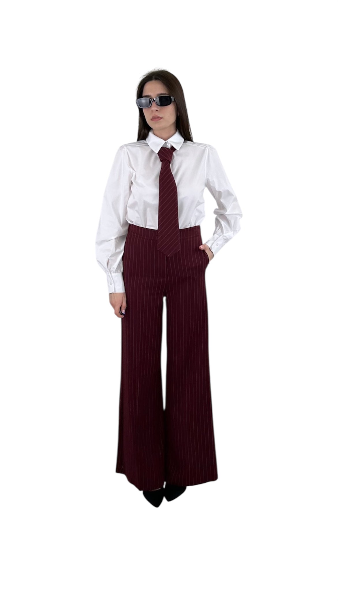Pantalone wide leg con una fantasia a sottili righe verticali