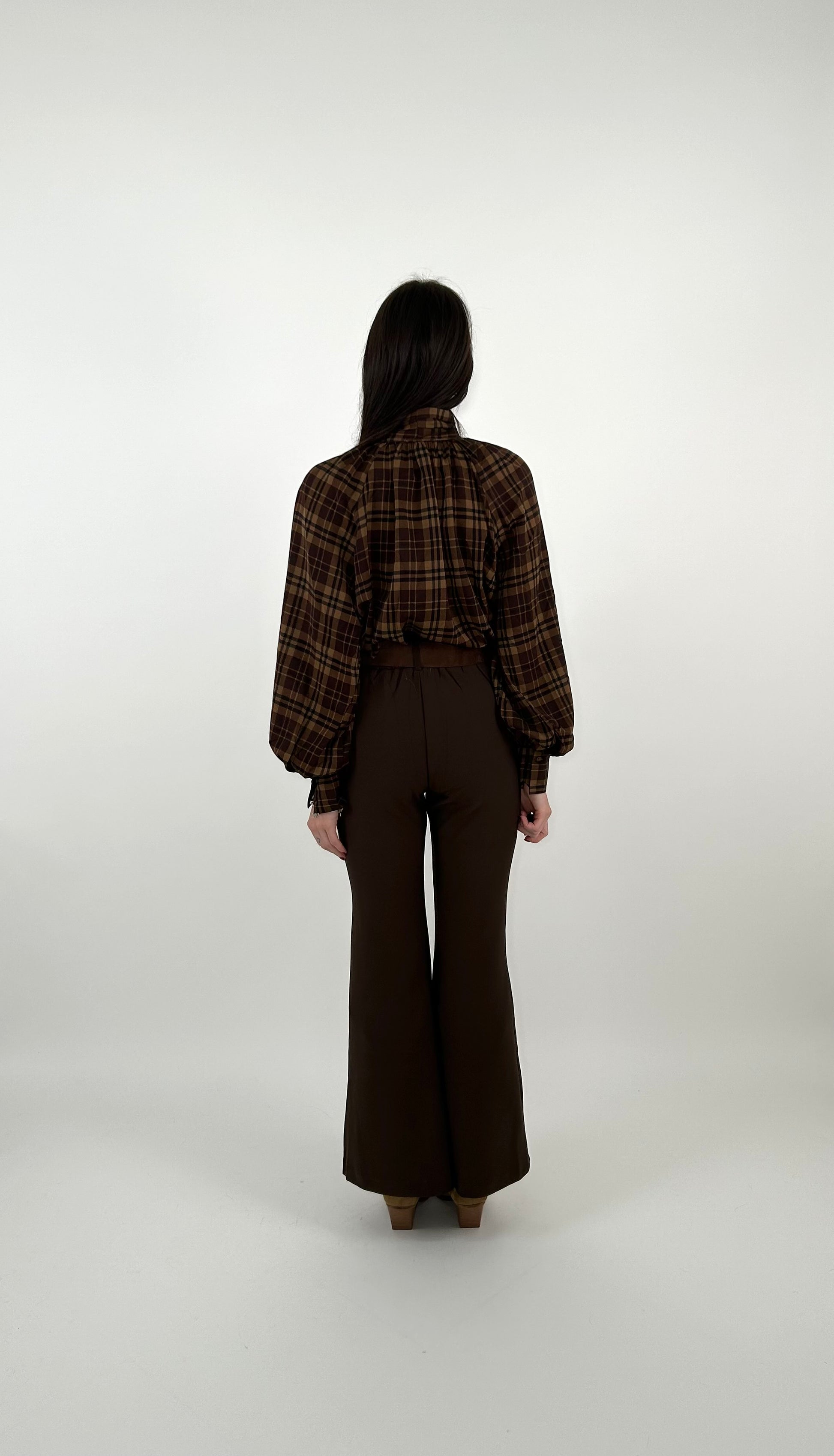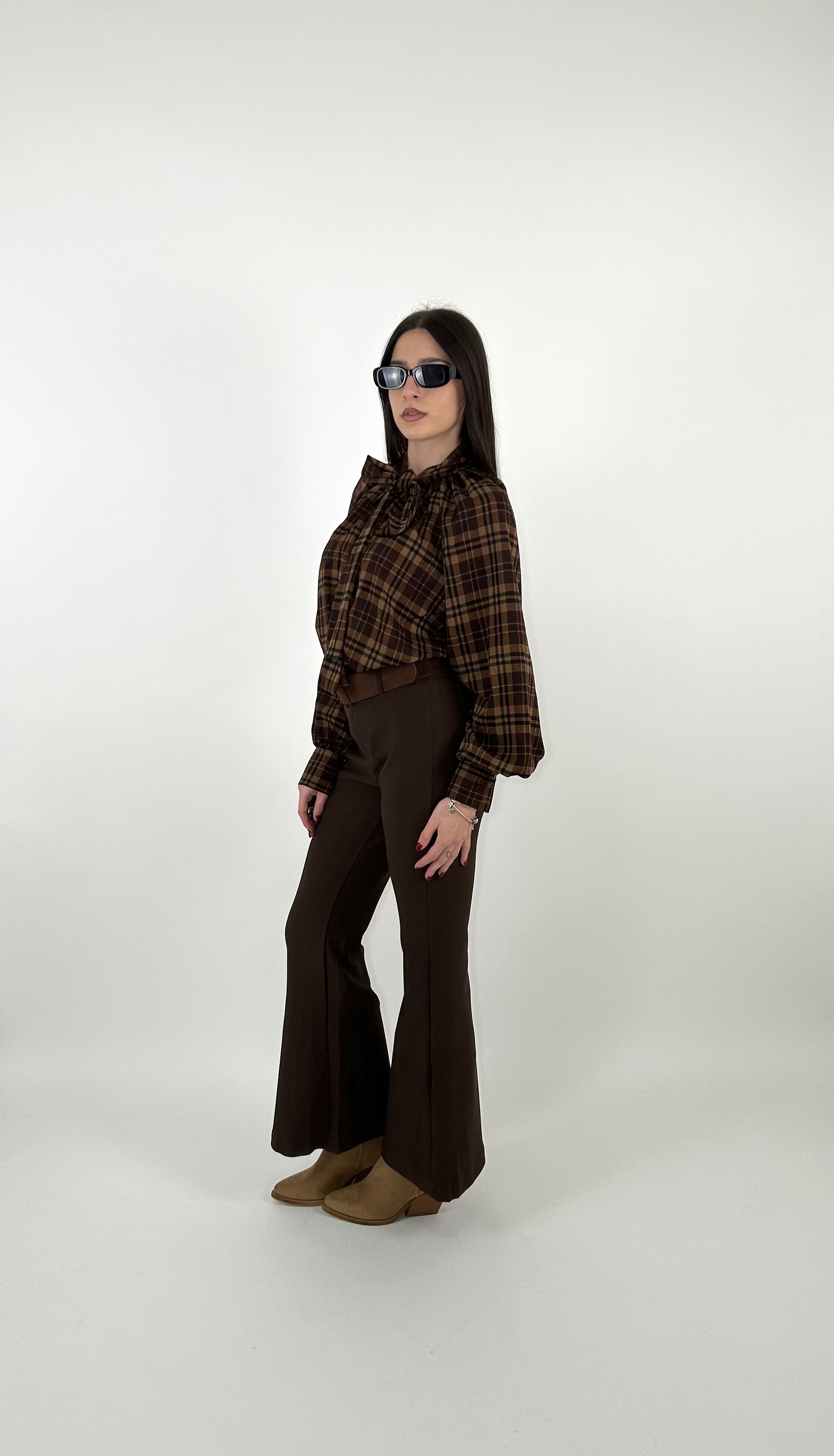Pantalone a zampa con una linea aderente sulla parte superiore e si allarga gradualmente dal ginocchio in giù