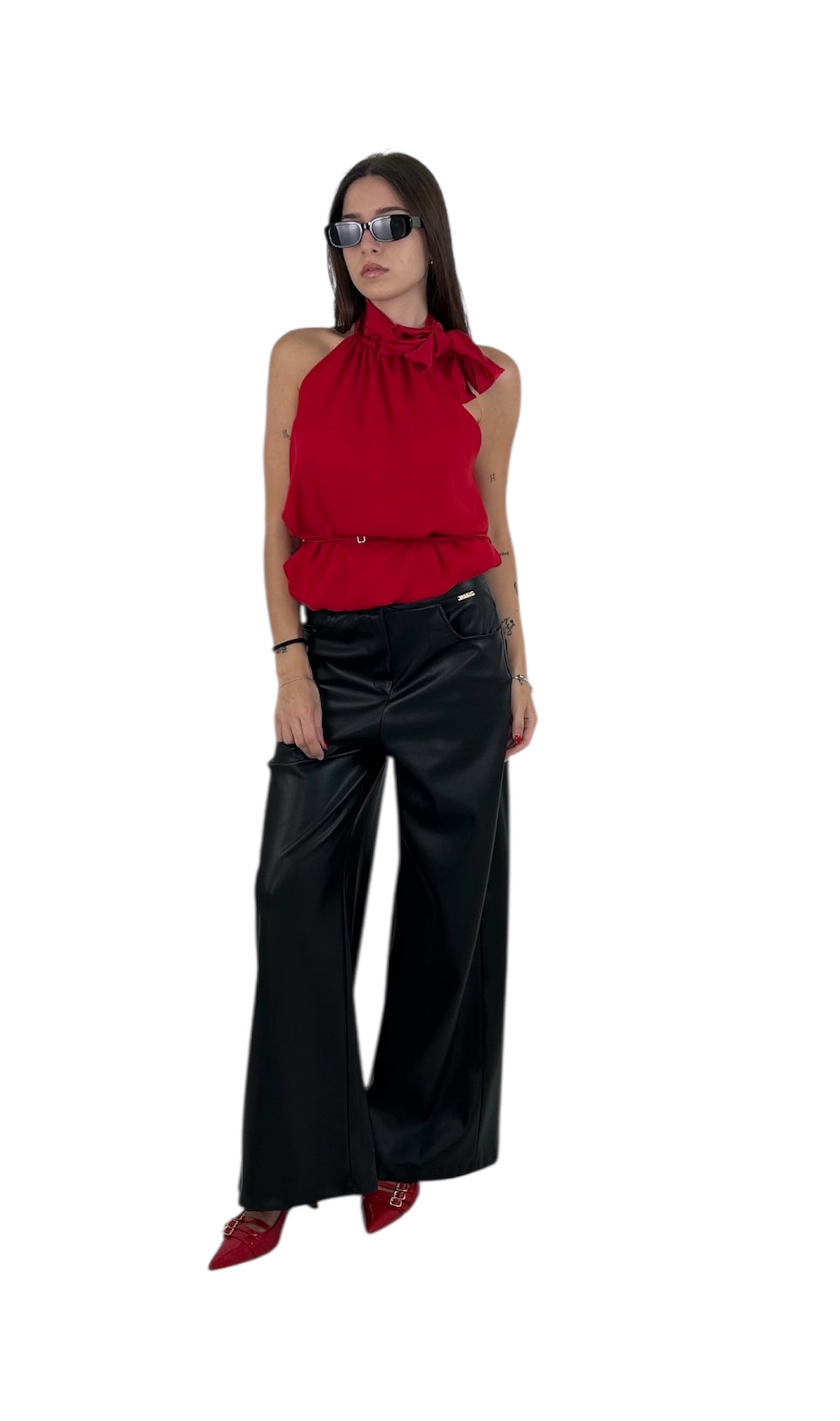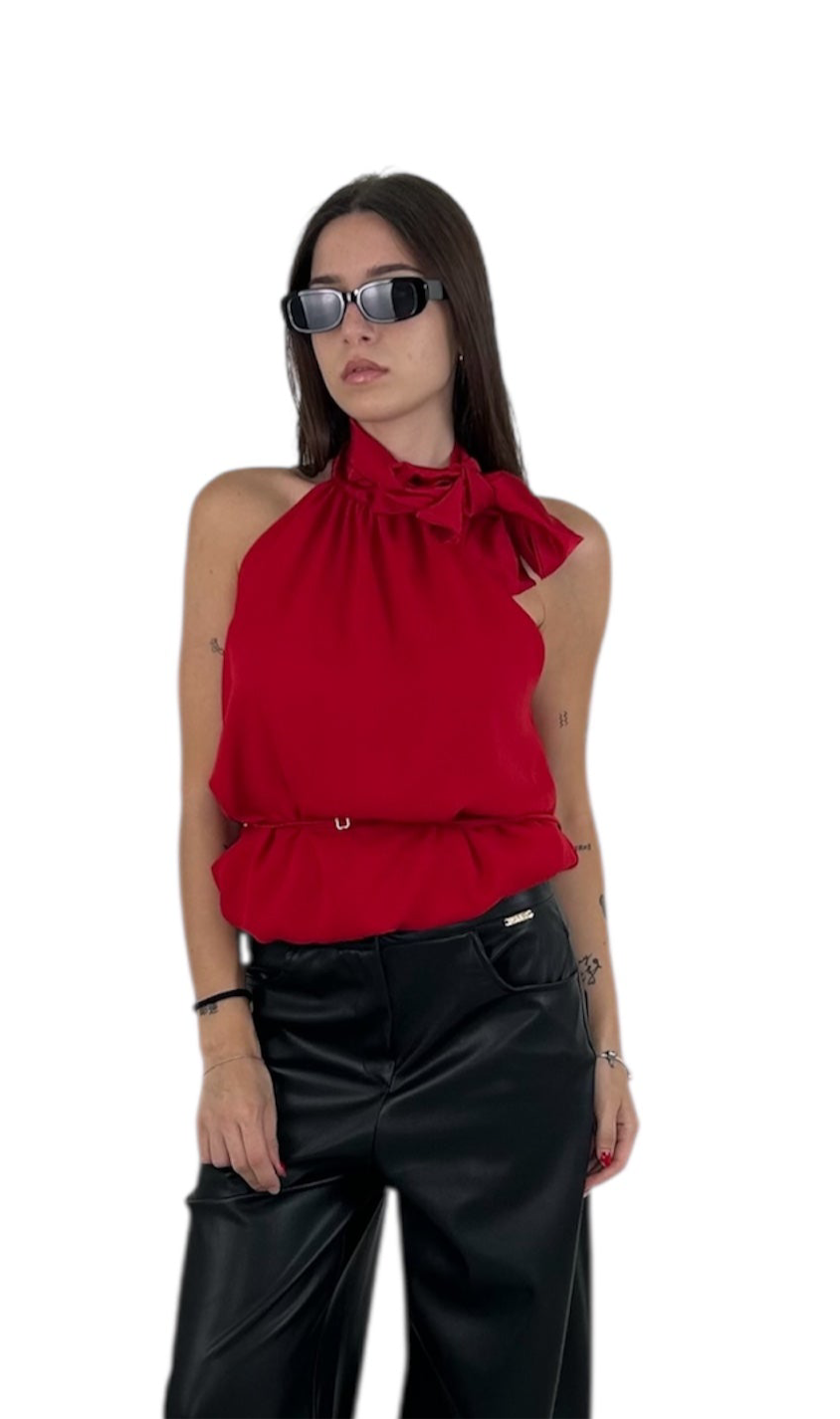 Top collo alto con piocco laterale